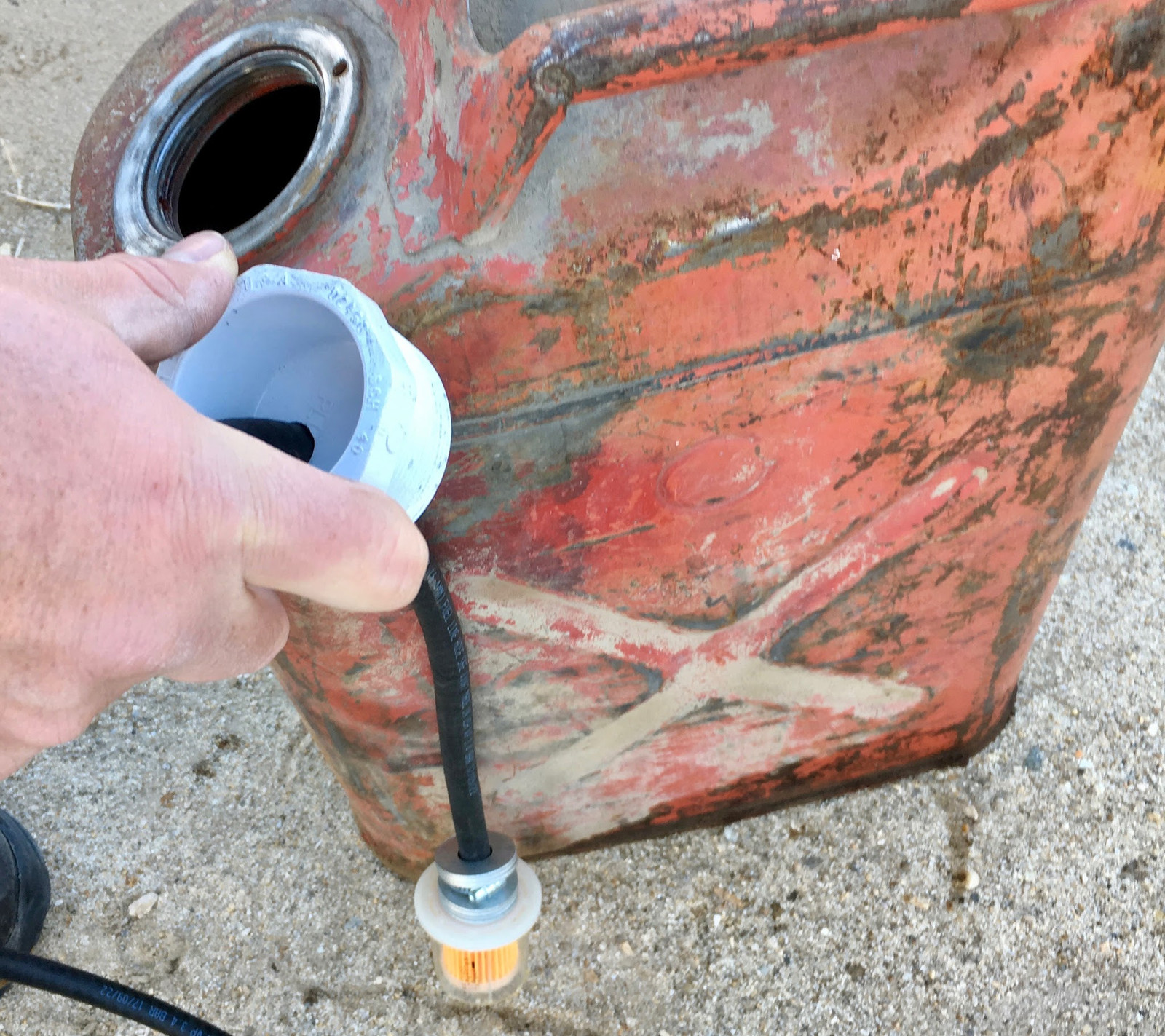 The new fuel cap screws right in - I got it finger tight and then about half a turn, since it doesn’t need to seal entirely airtight (just keep water out). PVC has slightly tapered threads, so don’t expect it to seat all the way down.