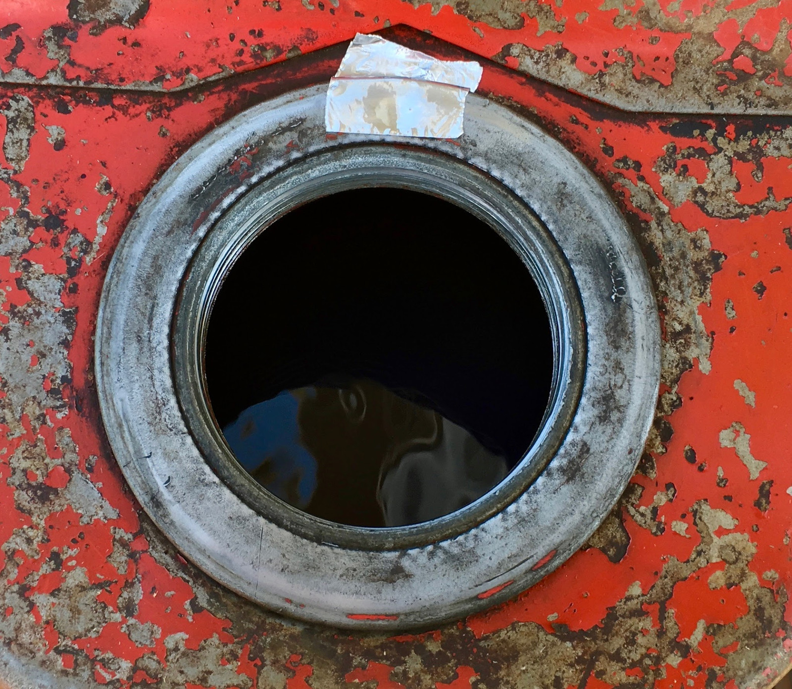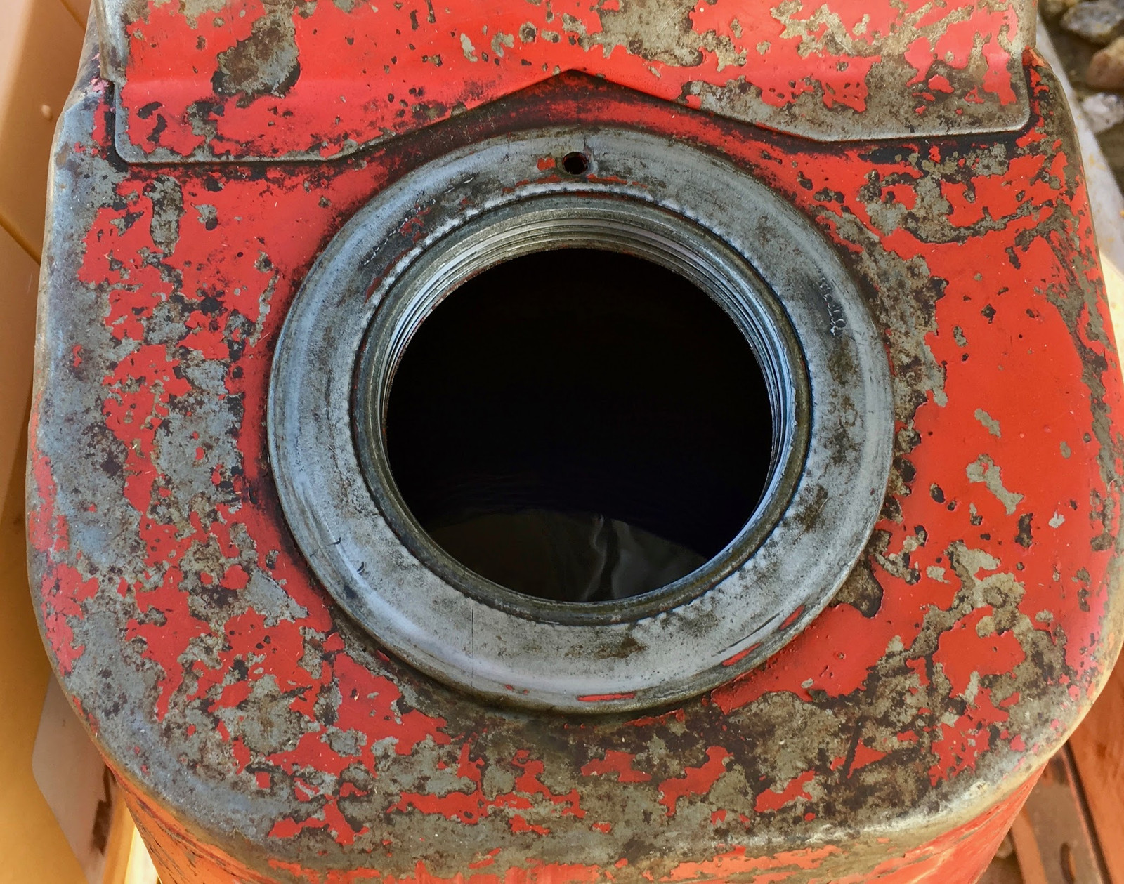 The opening on these is a 2” threaded fitting. It matches the normal PVC pipe threads pretty well, so you can build your own fill spout or extended run adapter out of PVC from your local hardware store, if you care. One thing to be aware of is the vent hole at the top. If you cover this, the tank won’t vent. That’s bad for sucking gasoline out. However, if you leave that open, there’s a good chance that rain will eventually make it in. There’s an easy solution, which I will demonstrate shortly!