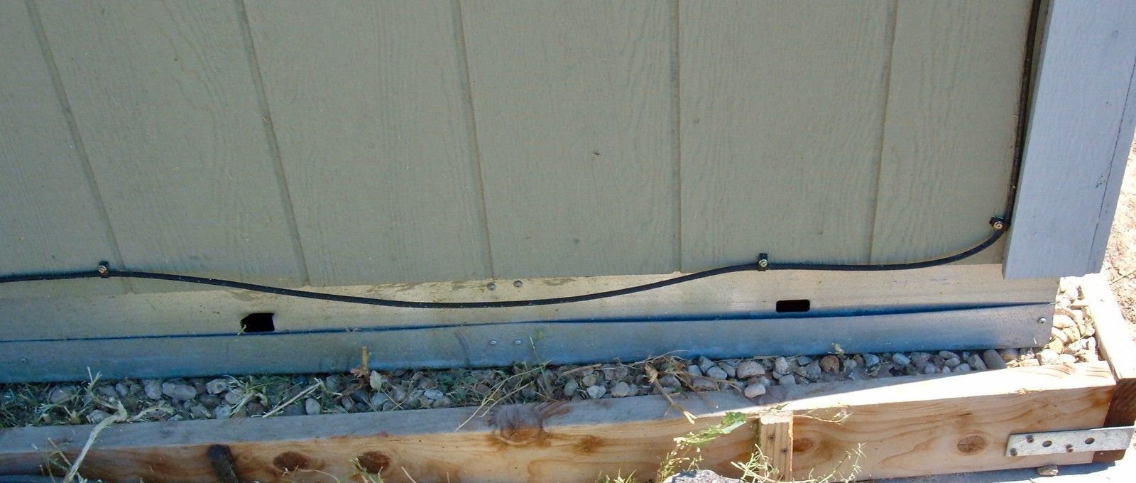While there’s no easy way to shove insulation under my shed, I do have some small access ports - the end framing has these holes that correspond with each gap between the studs under there. So, if I can find something to inject in there, I’d be golden.