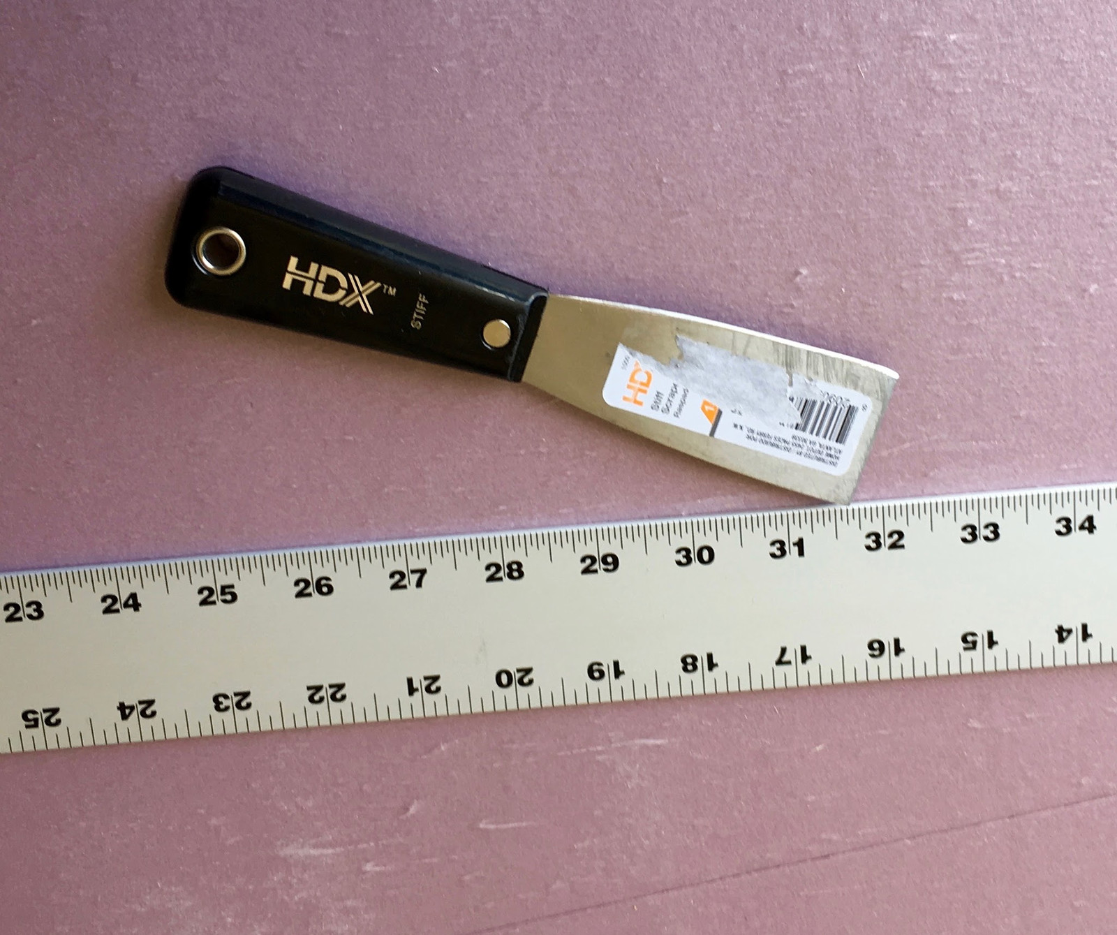 Mine doesn’t have quite as fine an edge as I’d prefer. I didn’t realize just how much easier that made things. Live and learn (and offer advice so other people can do better). I also picked up a 4’ aluminum measuring stick while I was getting the putty knife - this is the full width of a sheet of plywood or foamboard, and makes cutting easier. You need a guide of some sort for this setup, and a normal yardstick is both too short, and too flexible. A hunk of iron bar would also work well as a guide.