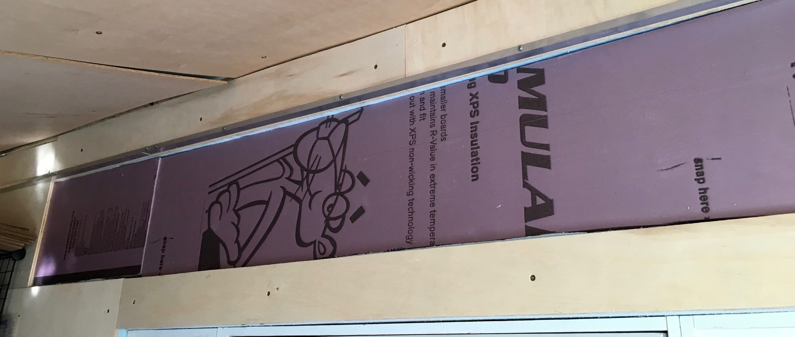 A bunch of measuring later, and I had a plan. I can shove two sheets of 2” thick foamboard (the blue or purple stuff, depending on where you shop) in, with a layer of plywood and some handles to easily remove them. This will offer an insulation value of about R20 (foamboard is pretty reliably R5 per inch), which is an awful lot better than my uninsulated windows.