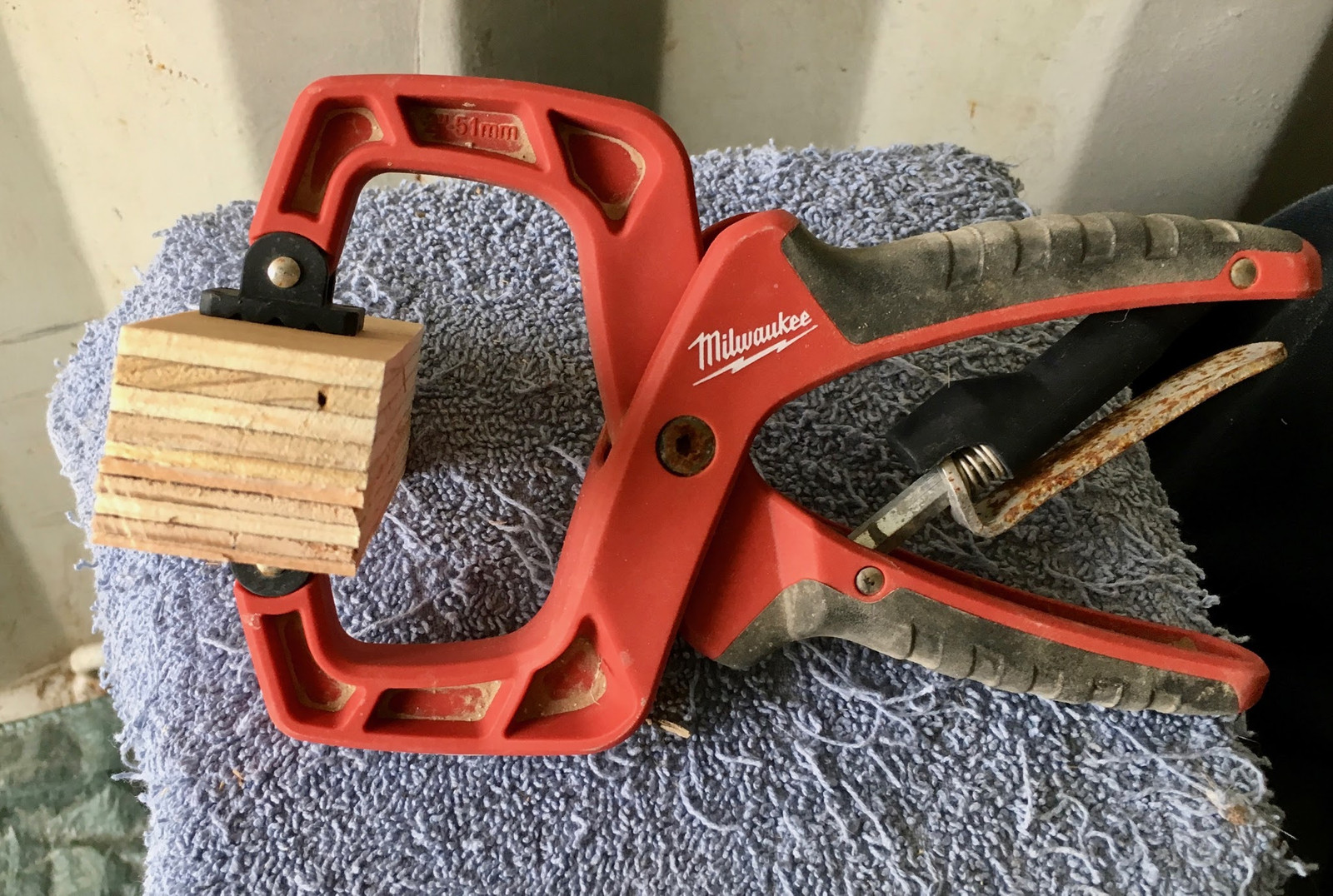 To hold the plugs together (and to hold the plywood base for handles on), I decided to glue the layers together - but I also didn’t want pieces to shift while I was hauling them back to the shipping container to glue. A couple screws, punched through the foamboard, served to pin all the pieces in position relative to one another. I could still pull them apart to get glue in, then clamp them down and keep the alignment perfect.