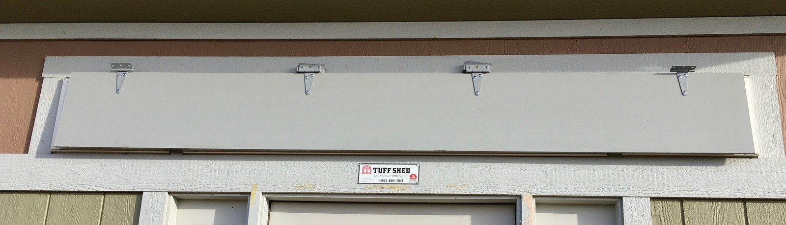 I used some 1/2” plywood to build the single shutter. The edges are sealed with Titebond III (a great waterproof glue, and easily found at your local hardware store), then the whole thing is primed and painted with something that’s pretty close to my shed trim (which also needs repainting around the door - I don’t think the trim got properly primed).
