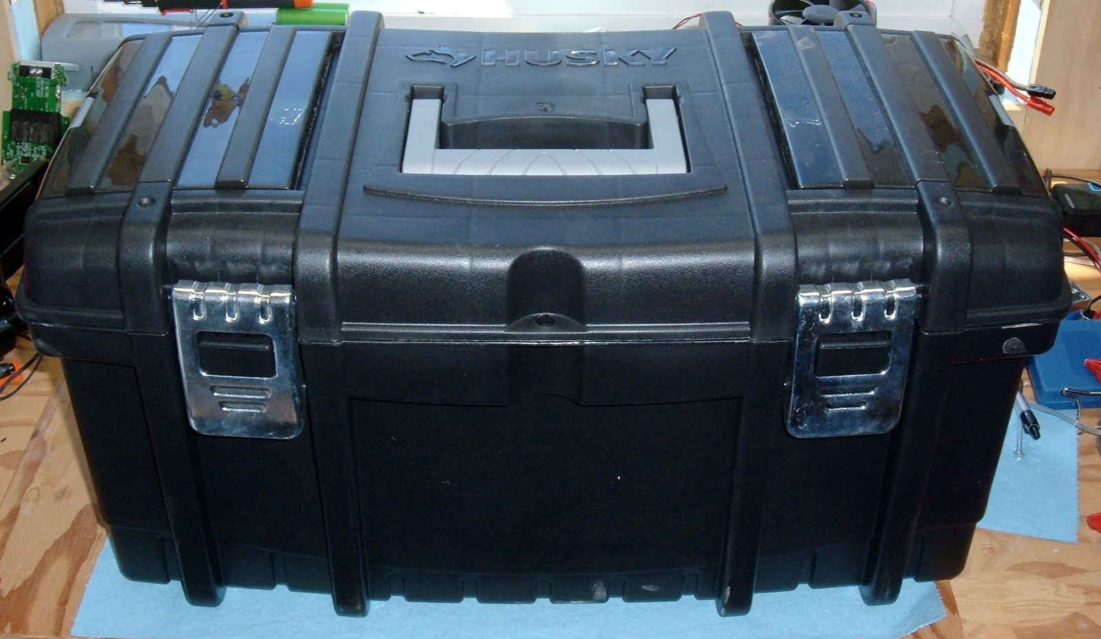 Finally, the build! I started out with a Husky toolbox from my local Home Depot. The size seemed about right, and it had plenty of room to work with - plus, those fancy little compartments on top that are perfect for putting cigarette lighter plugs in (yes, I’m old enough that I call a 12V car accessory plug a “cigarette lighter,” and, yes, I know how they work, not that I’ve ever smoked a cigarette).