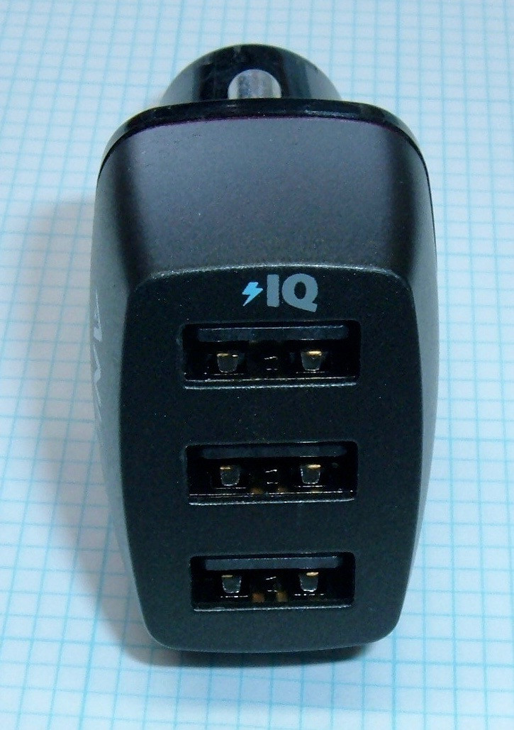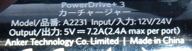 For the USB power side of things, I selected an Anker iQ 3 port car charger. This works on a 24V system, and does the right thing for both iOS and Android devices in terms of fast charging (they detect the device and feed it lots of power, which is useful).