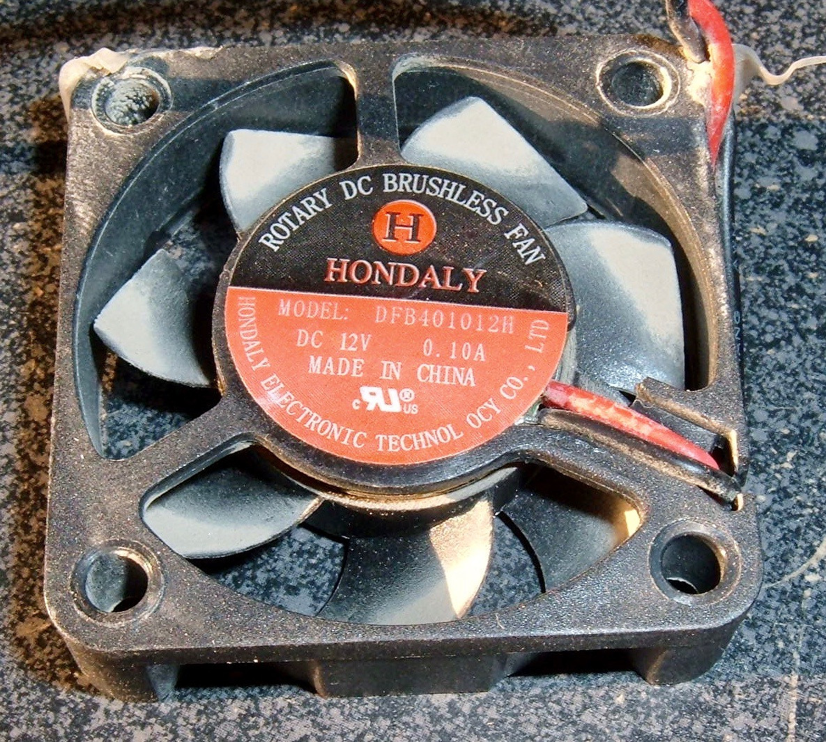 The old fans are 40mm Hondaly DFB401012H fans - 12V, 0.1A, 6.4 CFM. If you’re replacing the fans on your own, you might want to find something a bit nicer with comparable airflow.