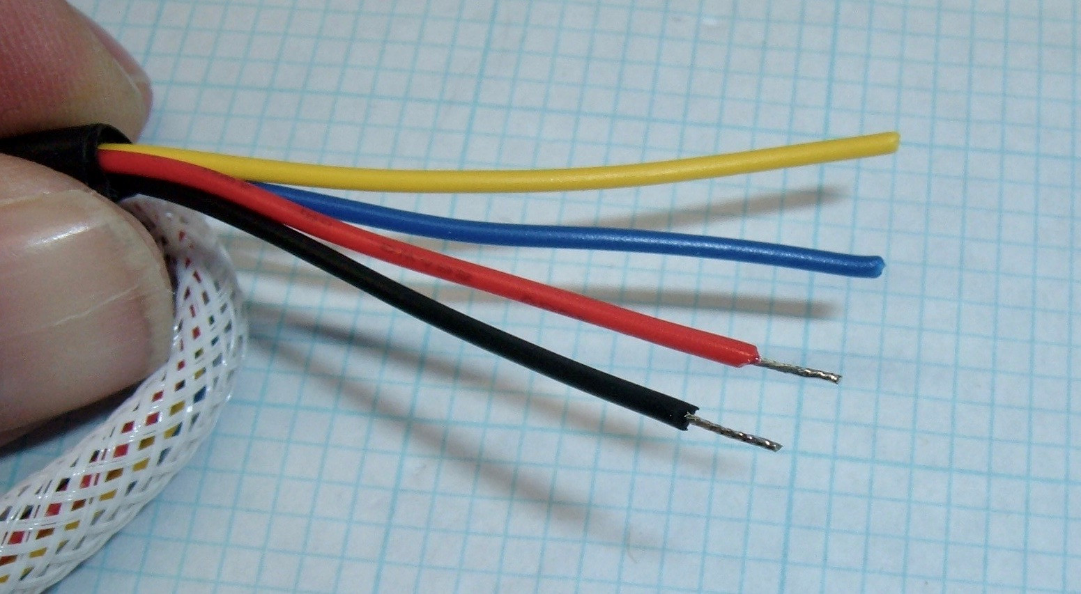 This fan has a 4 wire connector - positive, negative, PWM control, and a tachometer output wire. I only care about the positive and negative, because I don’t have a PWM controller and don’t have a way to hook up the tach. To turn the normal wires into something I can stick in a terminal block, I used a technique I use regularly: Tin & Trim. Strip the wire end a bit further back than the end you need, flux the wire, flow some solder into it, and then (because there’s usually a slight ball on the end of the wire), trim the very end off. You get a nice solid end that’s perfectly suited for terminal blocks or breadboards. I’m not doing anything with the other wires, but I’m leaving them around in case I want to add PWM control later.