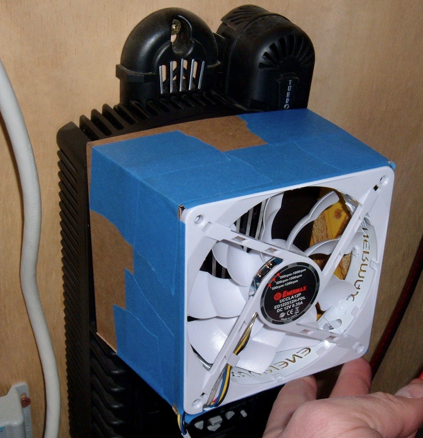 With how my Classic is loaded up, it only runs the bottom fans. I’ve never heard the “Turbo” fan kick on, so theoretically, I should be OK with simply adding some airflow to the core of the unit. If I can get enough airflow through there with a quiet fan, the main fans shouldn’t kick on at all (or, at least, far less often).