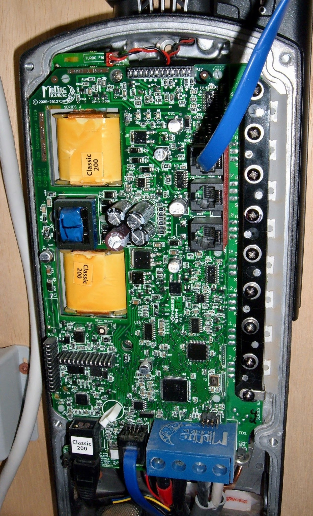 While I’m in here, I don’t think I’ve shared a good picture of the inside of a MidNite Classic. It’s a good looking unit on the inside! The power FETs are along the right side, the blue cable (on the top) goes to the remote console unit, and the other terminals directly below it are for communication between units. You can gang a whole bunch of Classics together and operate them in sync - one master unit controls what charge mode everything is in, shares the temperature reading from the battery pack, etc. They’re quite fancy units when you dive into the capabilities!