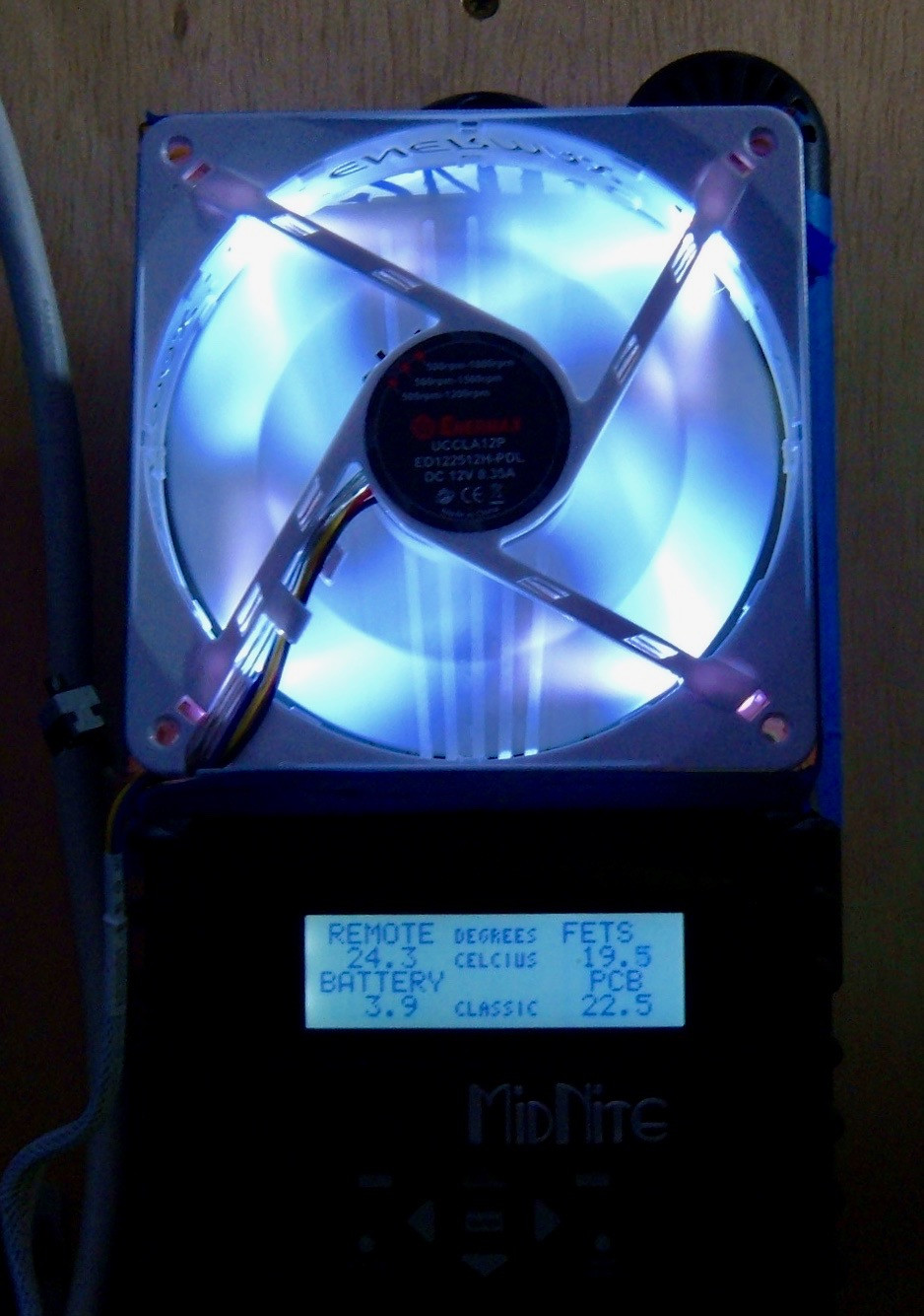After close to a year of operation, I noticed that the fans on the Classic were getting louder. Not just noise, but the quality of the noise had more of a rattling and grumbling quality to it. I’ve had enough failed computer fans over the years to recognize the sound of a failing sleeve bearing fan, so I contacted MidNite support and they very helpfully shipped me a new pair of fans.