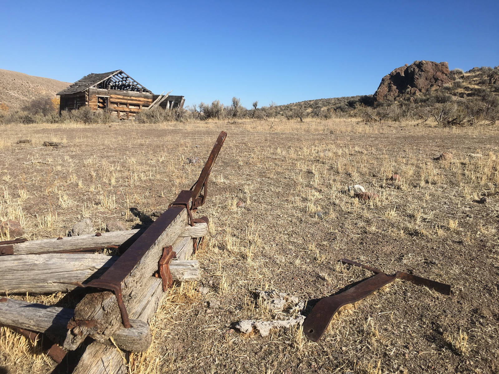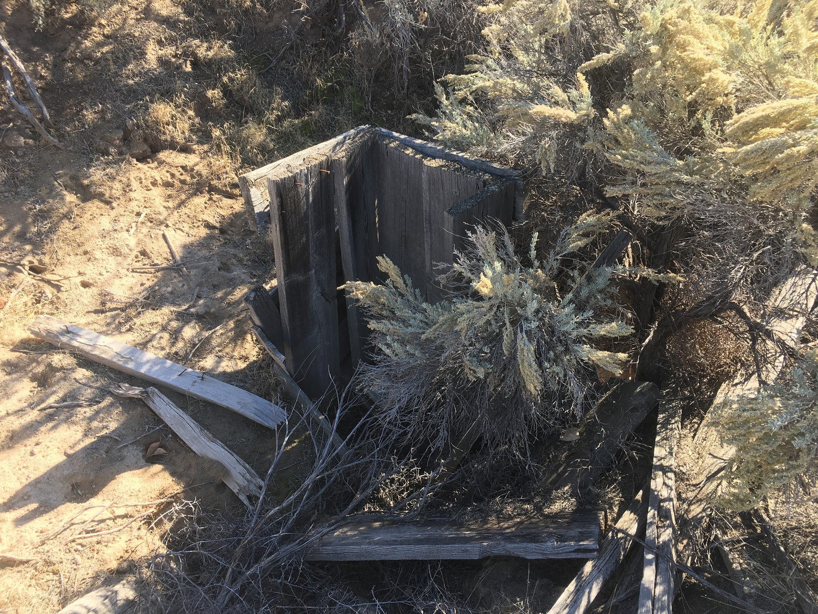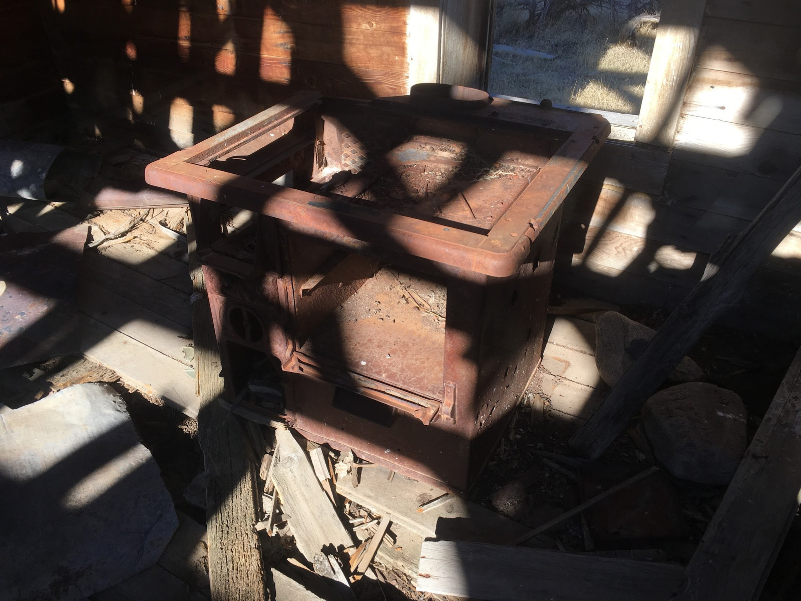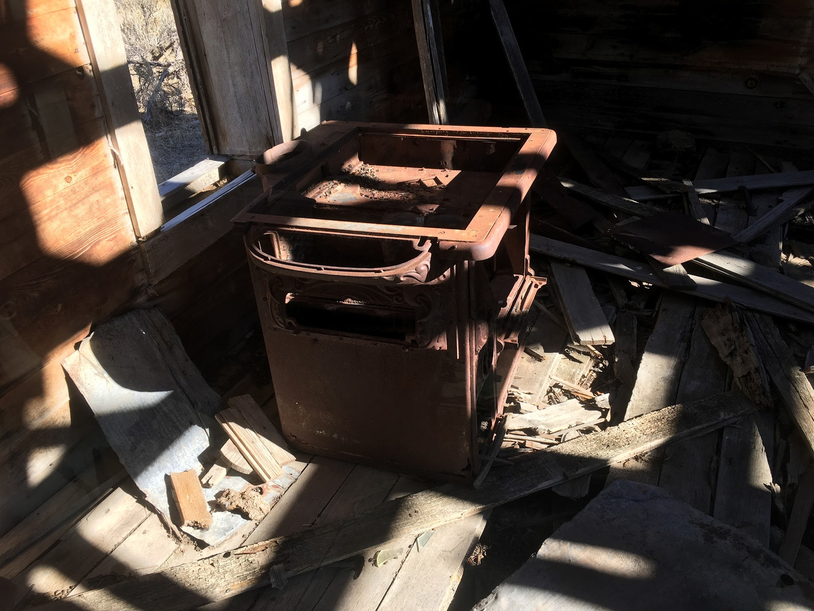 The skeleton of the stove is still here. The smaller pieces and chimney have been removed and (presumably) repurposed, at some point, but the main frame is still in place, and still in pretty good condition. Rusted, sure, but it seems solid and isn’t anywhere near rusted through. High desert does a good job of preserving, well, everything. I don’t think this structure would be in nearly so good of shape in other places in the country.