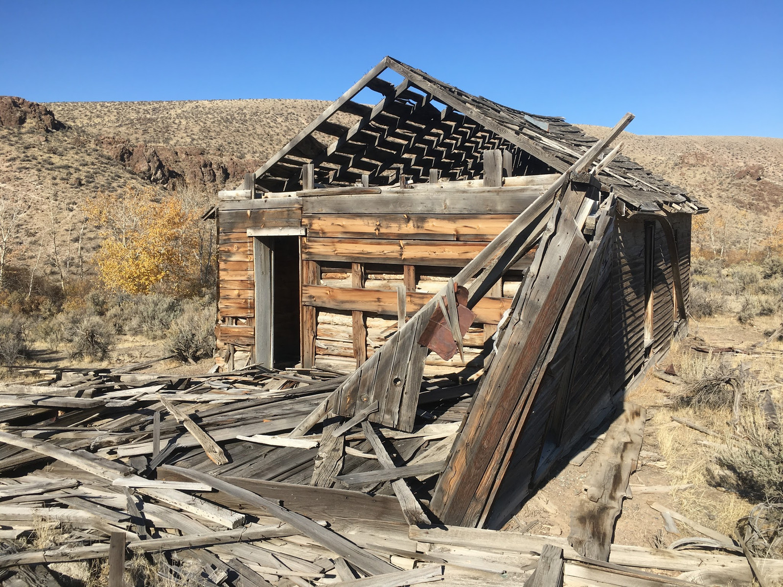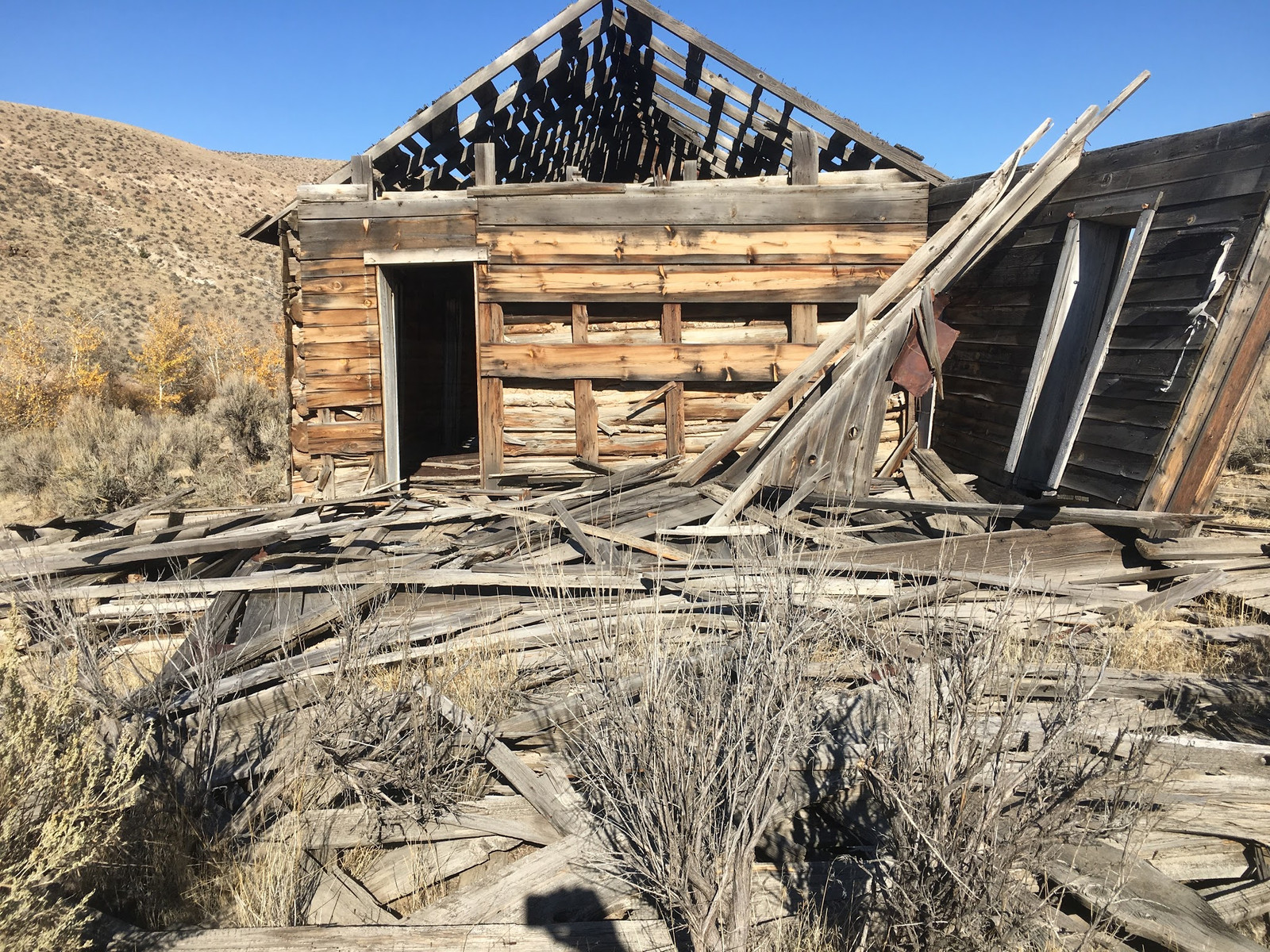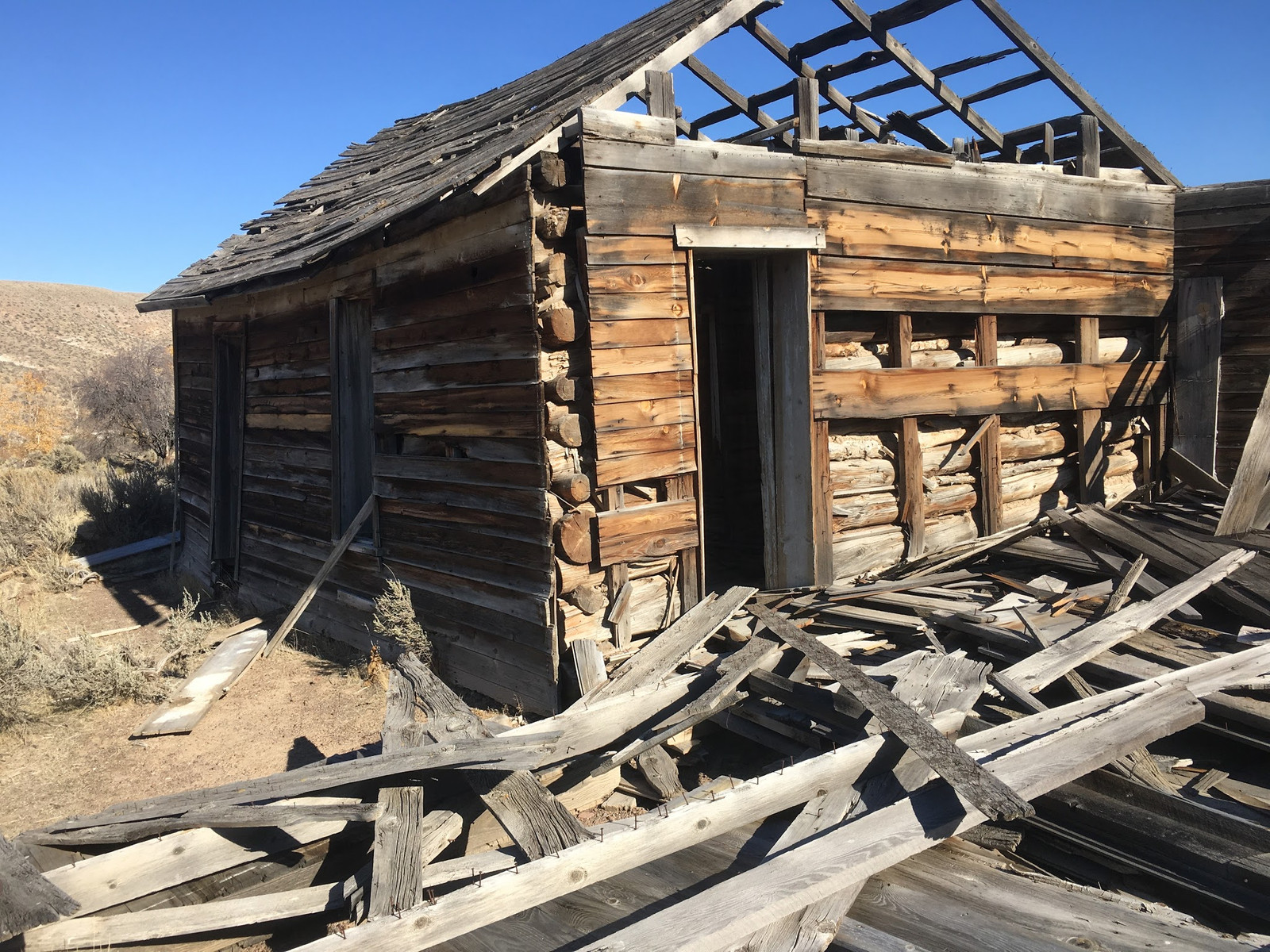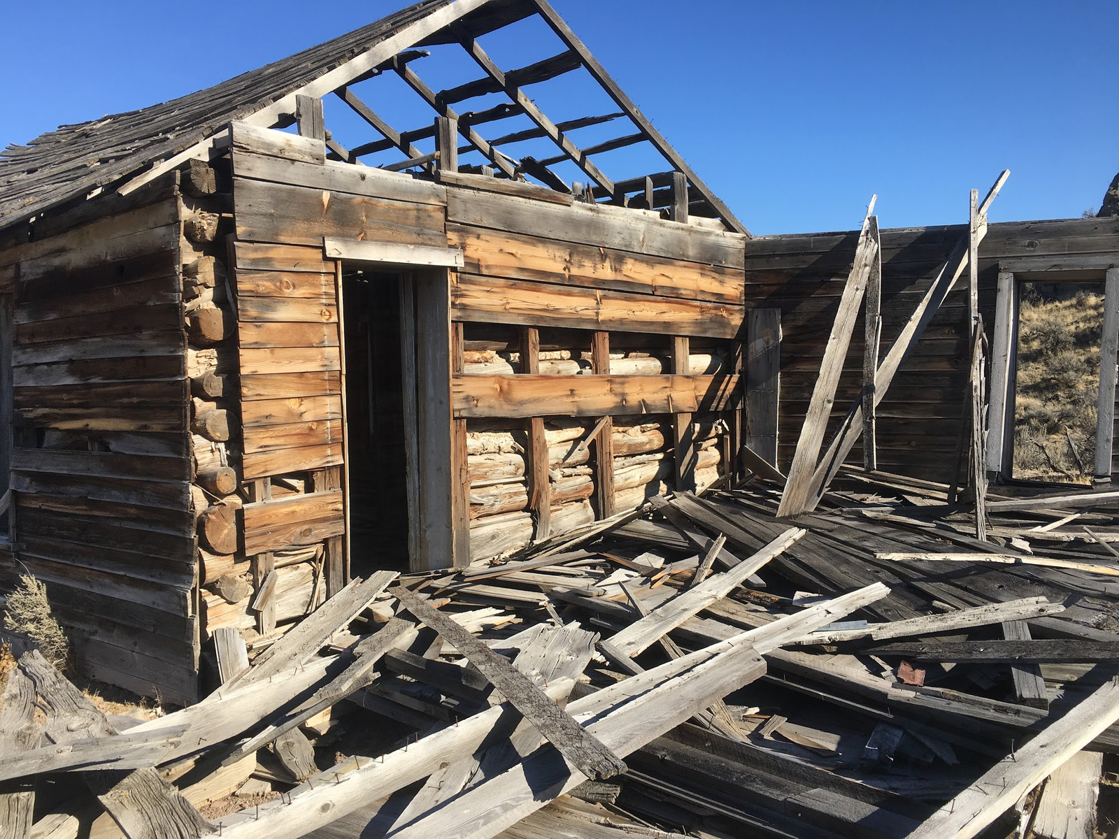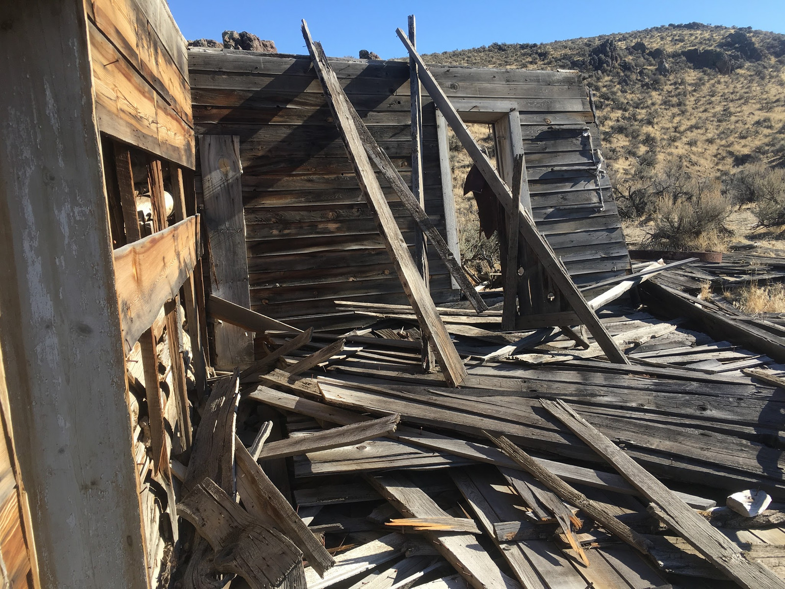 It’s flat. I think the longer timbers still propped up were roof related, but I don’t know what the roof looked like originally, and I didn’t feel like walking around on the collapsed structure to poke around. I’d rather not get a nail through my boot and into my foot, again. Not recommended.