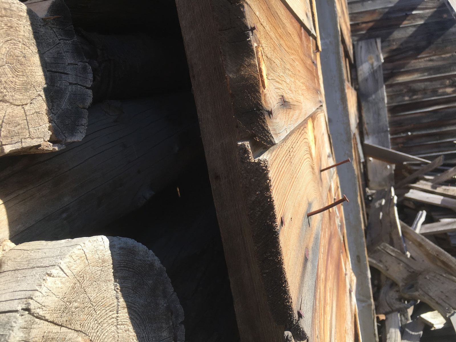 Everything is nailed together. Despite the age of the cabin, the nails are holding up just fine, and in the sections that are still together, there’s no indication of them pulling out (beyond a bit of board warping).