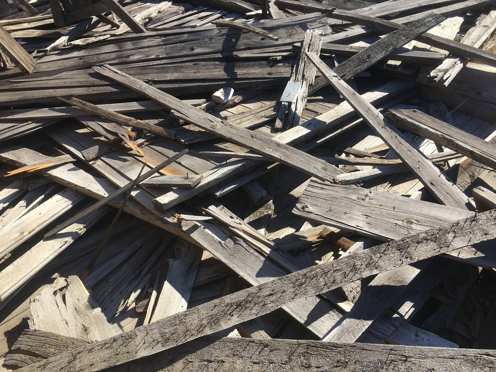 I have no idea what finally took it down, but in the collapsed sections, there’s just not much beyond flat boards piled on top of each other - nothing in the way of structure remaining. You can see the siding coming off the main section as well. This may have been added later - I’m not sure.