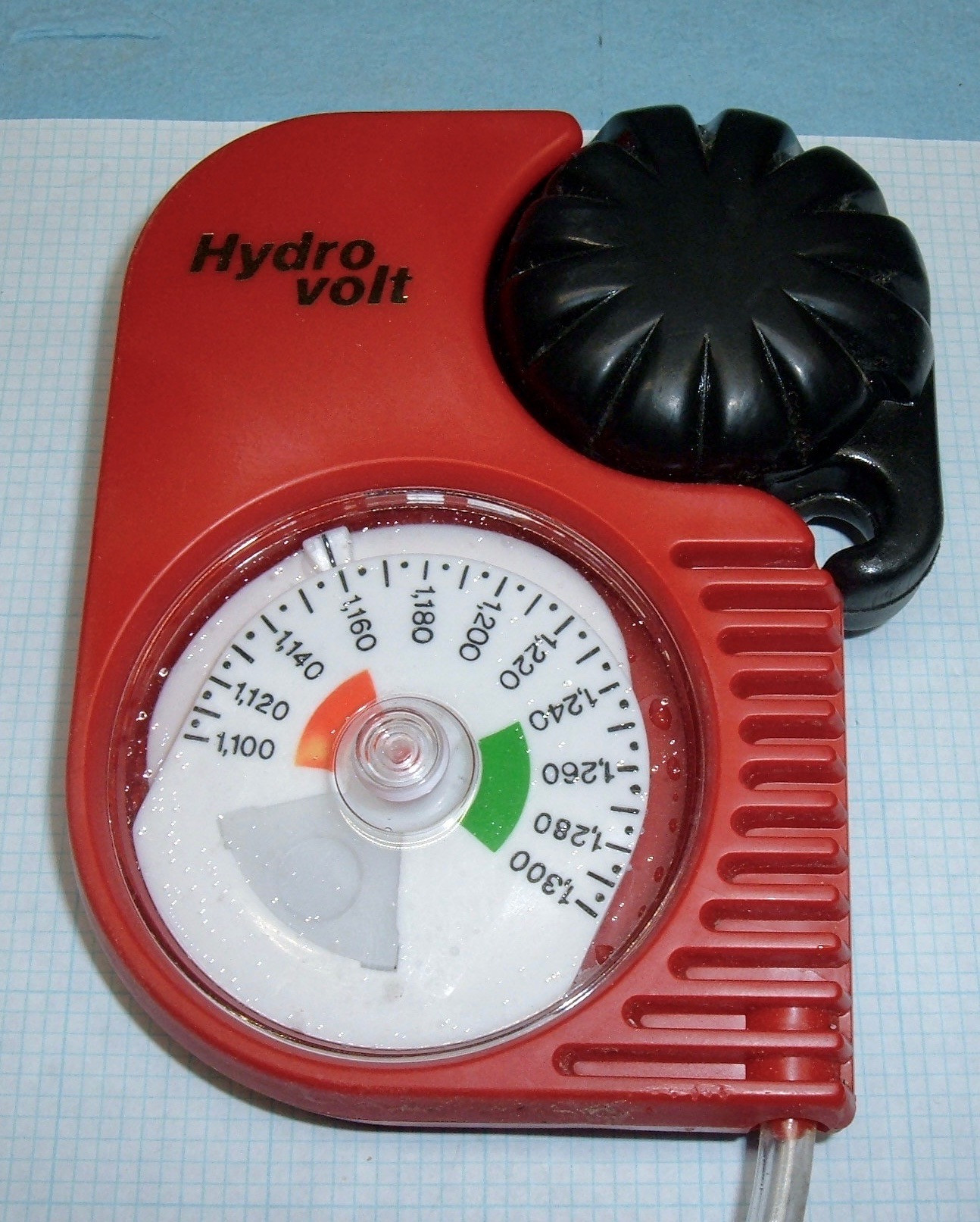 A refractometer is a much higher precision instrument, and I use this somewhat regularly for higher precision readings. They’re not the cheapest thing on the planet, and you are having to drip acid around outside the cells, but the precision is worth it. Also, the thermal mass of a refractometer pretty much solves temperature compensation for the measurements - just be sure your refractometer is at the target temperature (plus or minus a bit), and the few drops of acid will take the temperature of the tool. Awesome!