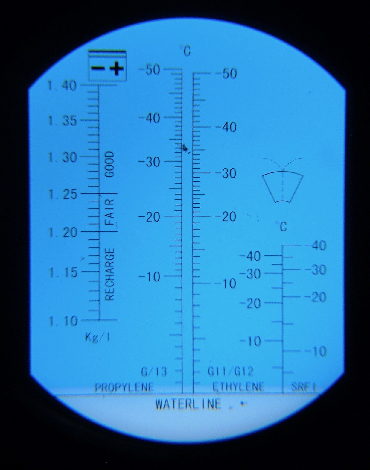 This is an interesting little gizmo to use, because you peer through it to see the waterline on the display (I’ve got some water in, because it was cold and I didn’t want to go outside to suck battery electrolyte). It’s quite precise, as long as you’re doing the temperature compensation, but it’s certainly less convenient than the battery tester above. However, this also will test various coolants and washer fluid as well (if you’re the type who still does that instead of just using the 50/50 premix).