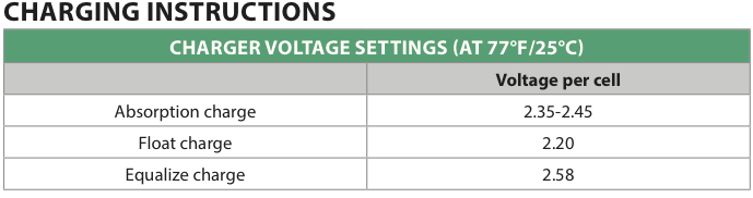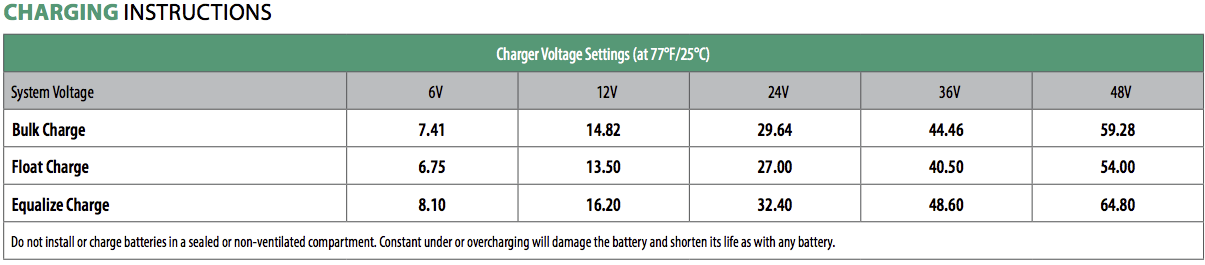 The older datasheets had voltage ranges - and most people, if they don’t understand lead acid, will likely pick something on the lower end of the range to be “nicer” to the cells. I did, not knowing any better (I think I used 2.40V/cell - smack in the middle of a range is good, right?). I knew my way around lithium, and lower charging voltages are easier on the cells. Not so for lead, if they’re not getting fully charged. Lower charging voltages on lead are quite literally “killing them with kindness.” Trojan’s revised datasheets eliminate the ambiguity and tell you to beat on them, hard.