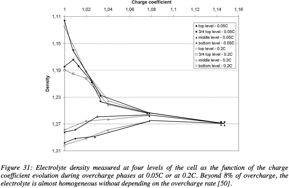 Preventing stratification is another advantage of running on the overcharge side of the knife. You’ll gas the cells more often and keep things mixed.