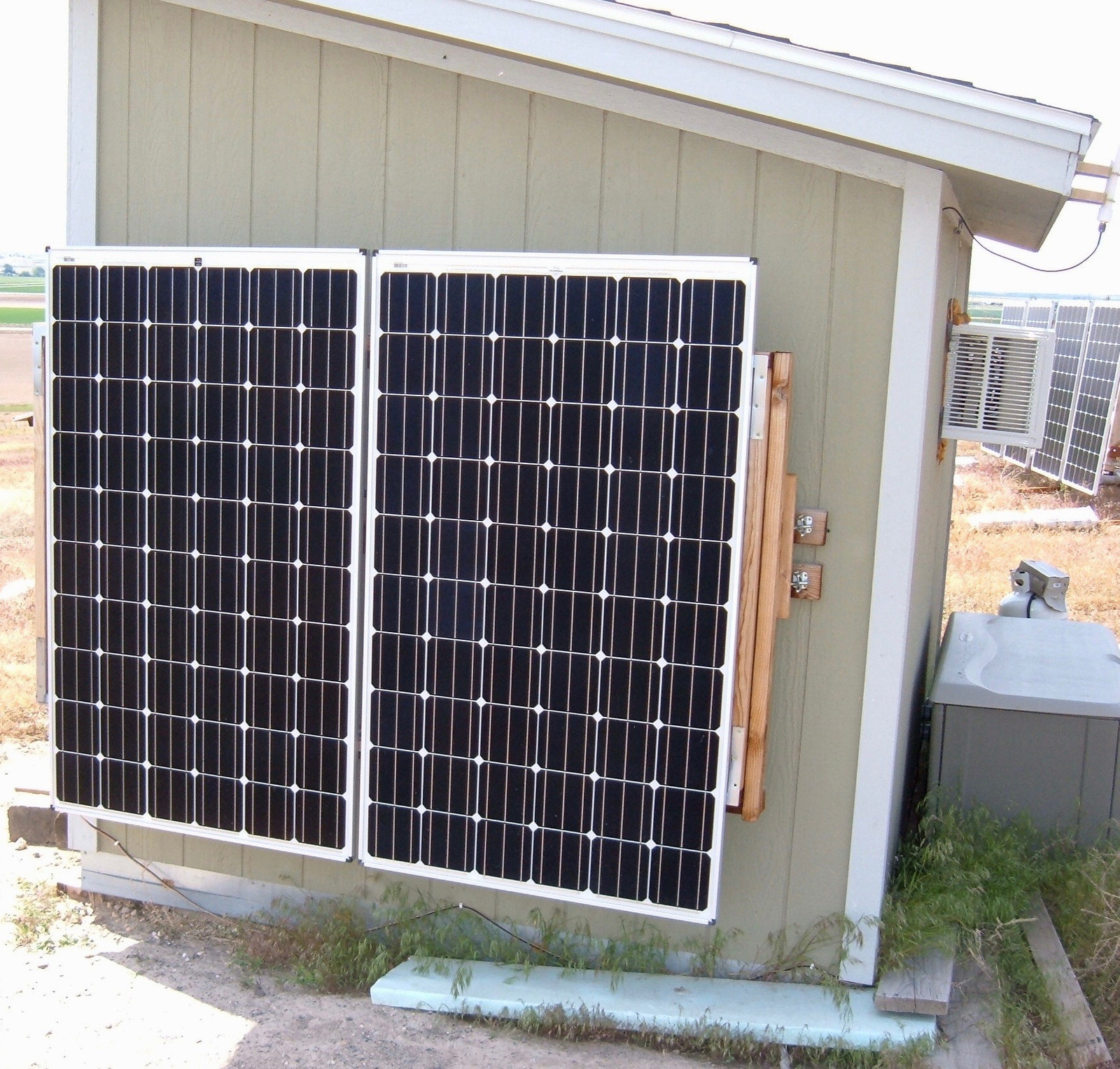 Swing them around to face the sun, and they’re operating at 7.4A at 58V. These panels are connected with a PWM controller (pulse width modulation, or basically a switch that toggles quickly), so they always operate at whatever my battery bank voltage is. That means they’re producing more watts when my bank is charging heavily (60V) than empty (48V). But that’s the way I hooked them up because it’s cheap and plenty good enough for my needs. Since their peak power comes fairly close to my battery bank voltage, the (small) gains of a MPPT controller don’t justify the cost on this secondary array. But what’s MPPT?