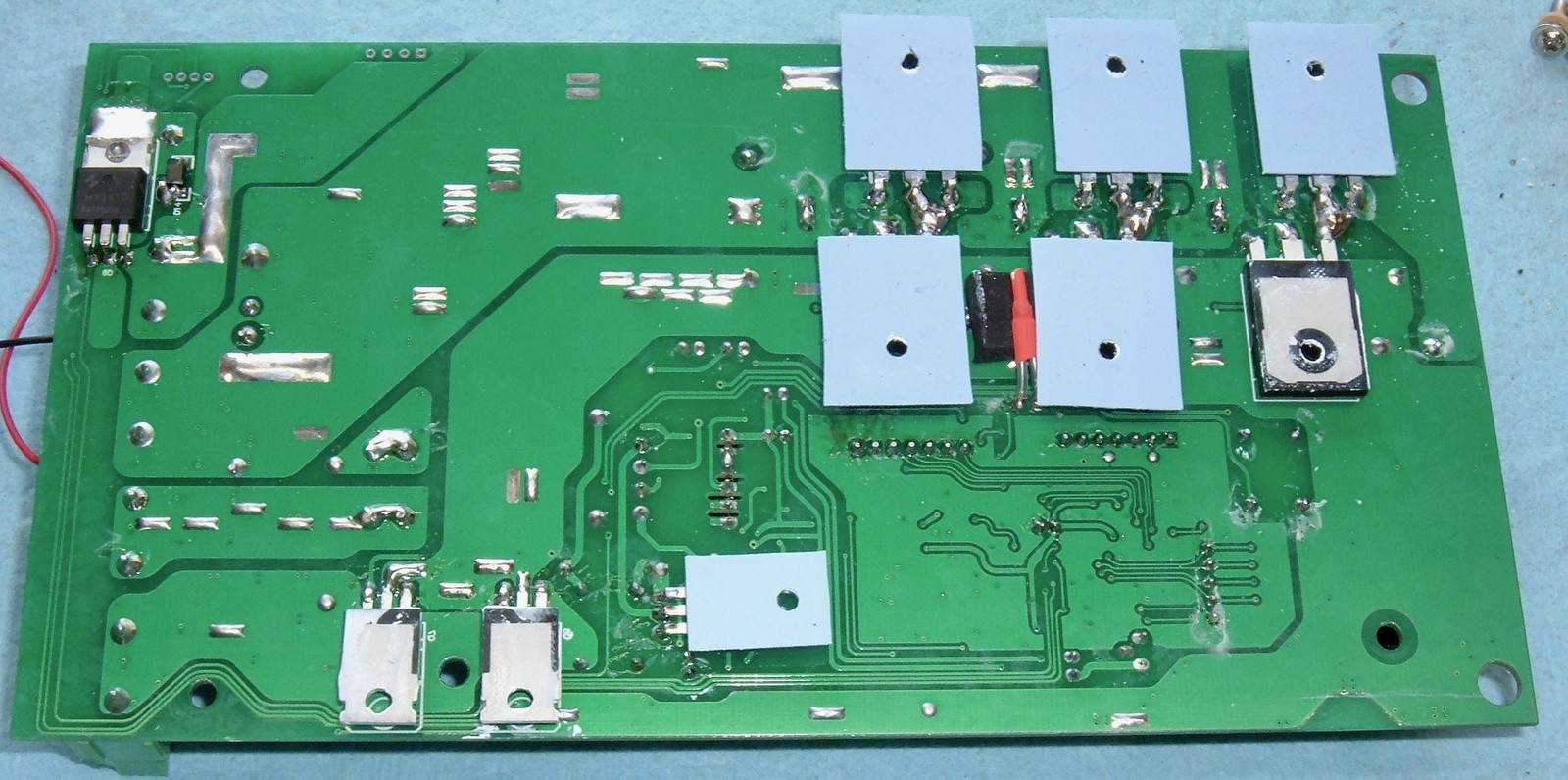 There’s no question that the back side of the board is hand soldered. Check out those solder globs! It’s not a bad way to link things together that have to deal with a lot of current, but it’s definitely not machine built.