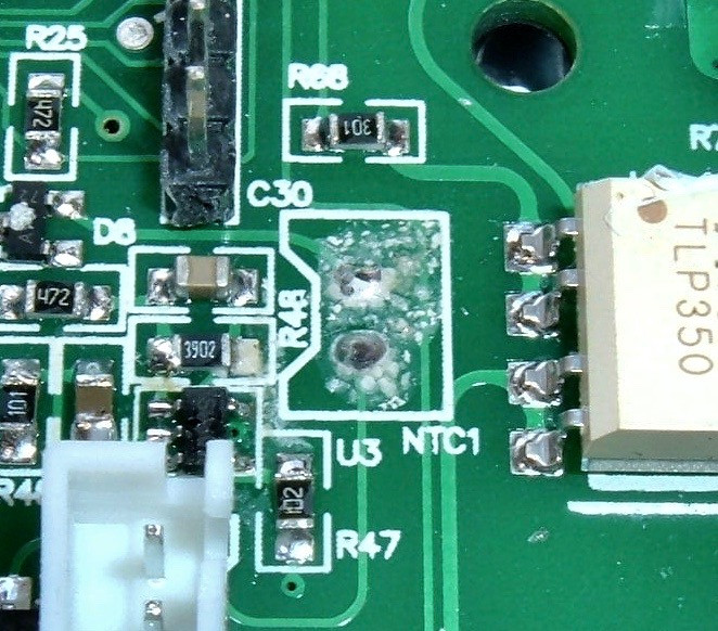 In case there’s any doubt, the front of the board has the “NTC1” label for where this thing solders in. NTC - Negative Temperature Coefficient. A thermistor!