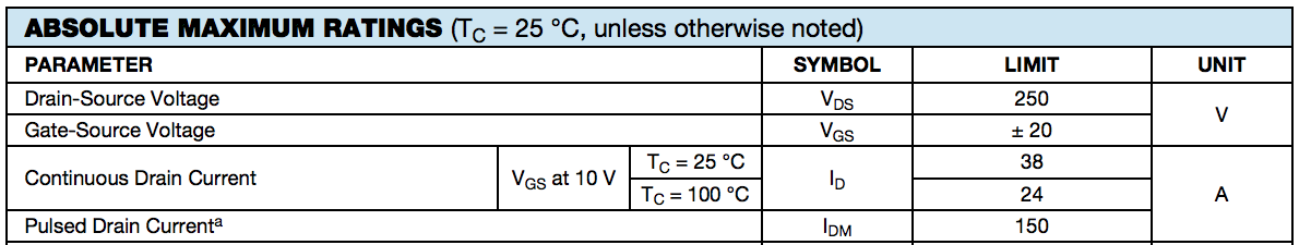 The stock power MOSFET is an IRFP264. This is a 250V rated power MOSFET (voltage controlled transistor), rated for 24A at 100C. It should be fine - though, you’ll note, I’ve already replaced the stock part…