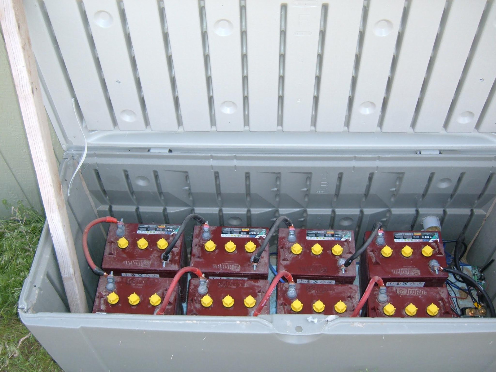When I was building my office, I needed something to store batteries in. Instead of building something custom, I just bought a $100 desk box from Home Depot (this sort of thing is way cheaper to pick up locally), put a sheet of foamboard on the bottom to help insulate things thermally from the ground, and tossed batteries in. This has been working great!