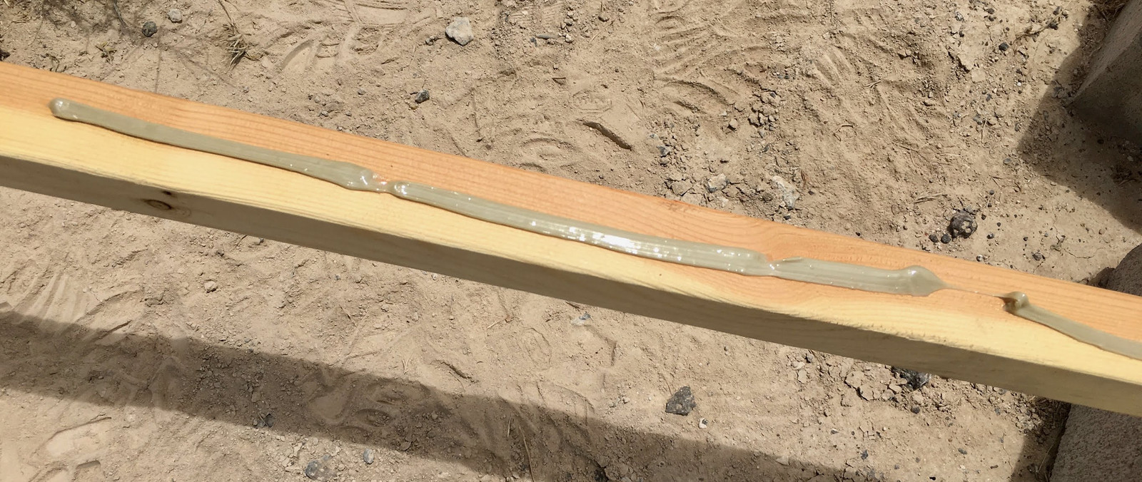 Step three: Apply some construction glue. I also try to keep a few tubes of this stuff around, because it’s useful often enough. I glued two adjoining sides of the 2x2 so it would be fully secured.