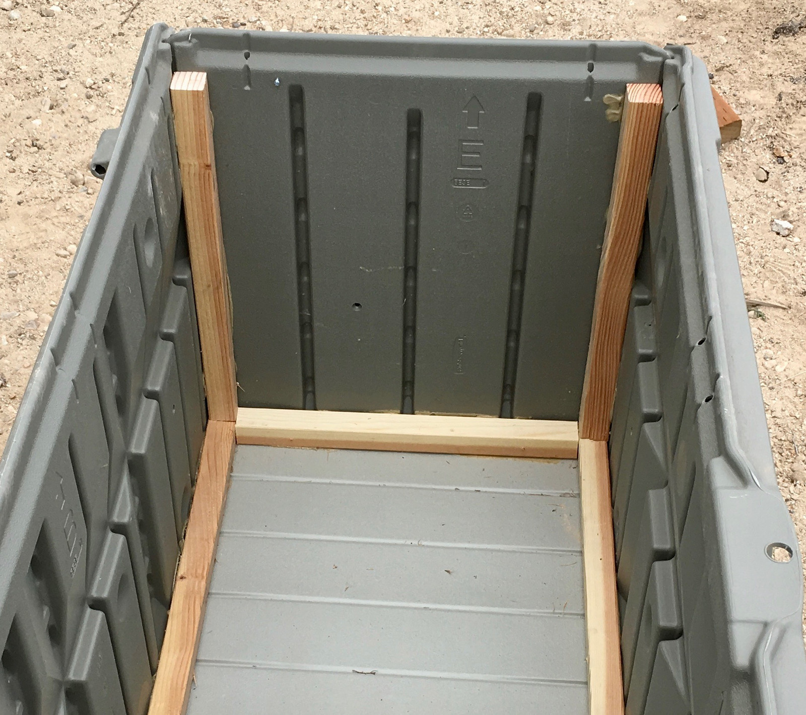 Disassemble box, move to lawn, hose down. Spray down until clean. Then move over to my normal construction zone by the shipping container.