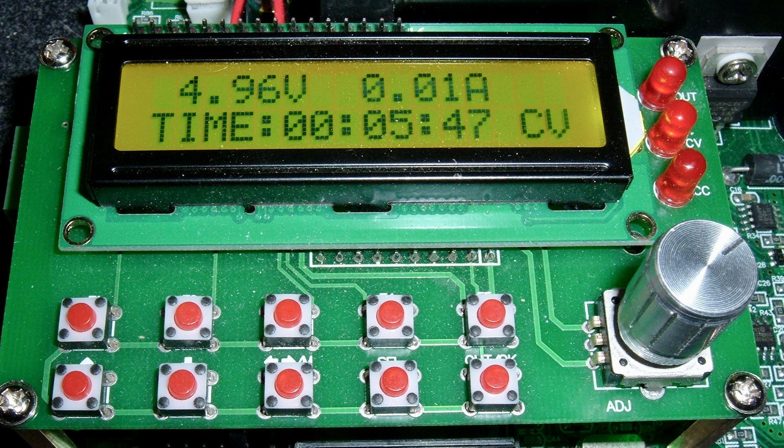 The “SEL button will toggle the cursor between no entry (where it starts), voltage, and current. It will underline the digit you’re changing, and the left/right button will change which digit you’re changing. It overflows properly (so 0.09 rolls over to 0.10 if you’re working on the last decimal place), but there’s a wide range of voltages and currents you can set, so use that to dial the value in quickly. Change a digit with the rotary selector, or the up/down buttons.