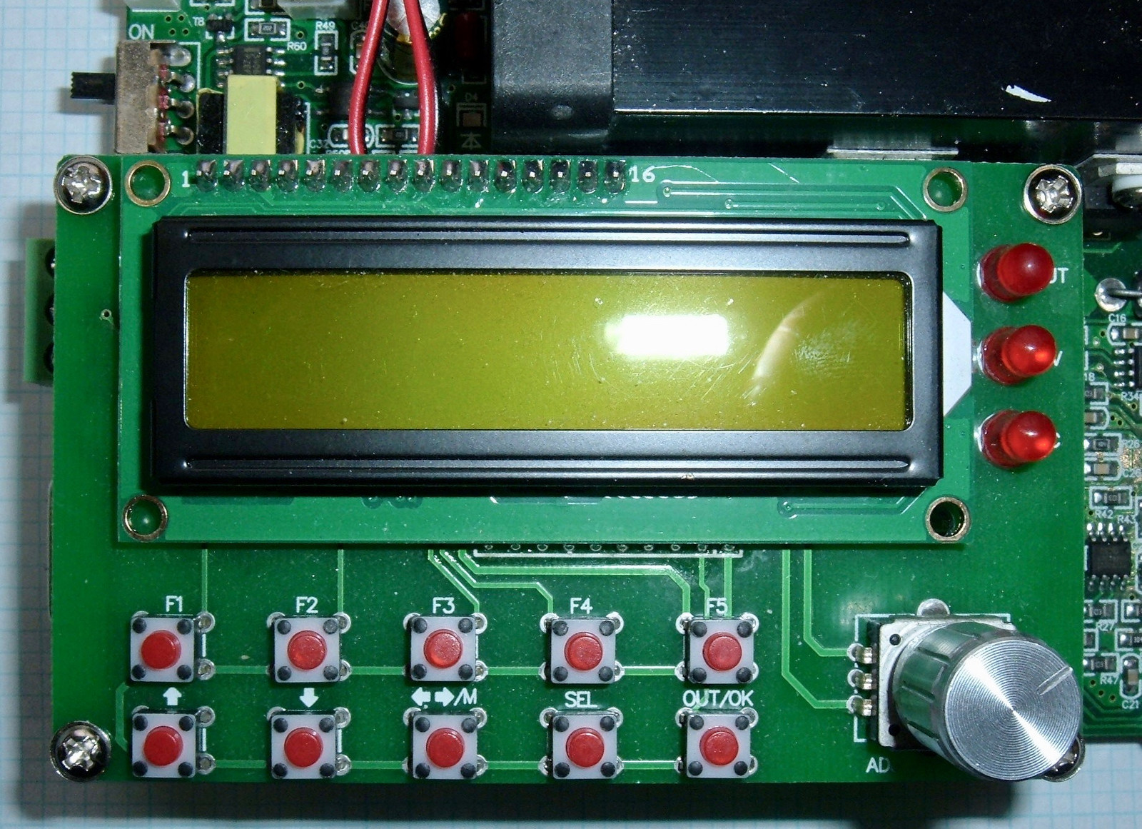 While the board can work perfectly well without the user interface daughterboard connected, most people will leave this board on. It contains the display (a standard enough 16x2 LCD), a few LEDs, a rotary encoder, and the 10 buttons.