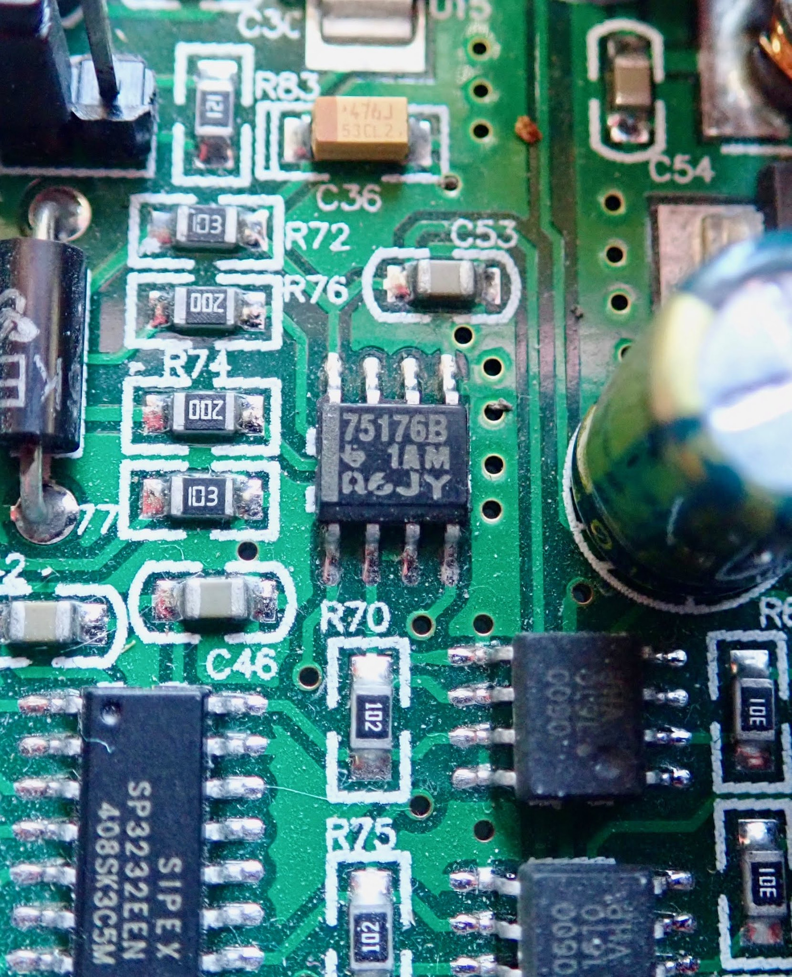 There’s a 75176B chip sitting near the port. What is it? A differential bus transceiver - exactly the sort of little chip you’d want to run a RS-485 link!