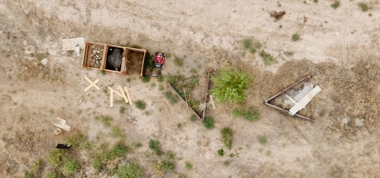 Another battle I’m fighting while trying to clean things up are the wood piles. A bunch of (dead) trees came down when the house went in, and I’m slowly turning them into firewood, roasted marshmallows, and assorted other things (possibly some hugels) over time. I didn’t realize until this recent drone survey of the property that I did, though, just how much room one of them was taking up. It’s taking space I’d like to either put garden or rainwater tanks, but definitely not a never ending pile of wood. I’ve removed most of the good wood from this pile, but there are still plenty of stumps I can’t cut apart (chainsaw chains don’t deal well with dirt/rock/grit, and a stump is a device for holding all of those things).