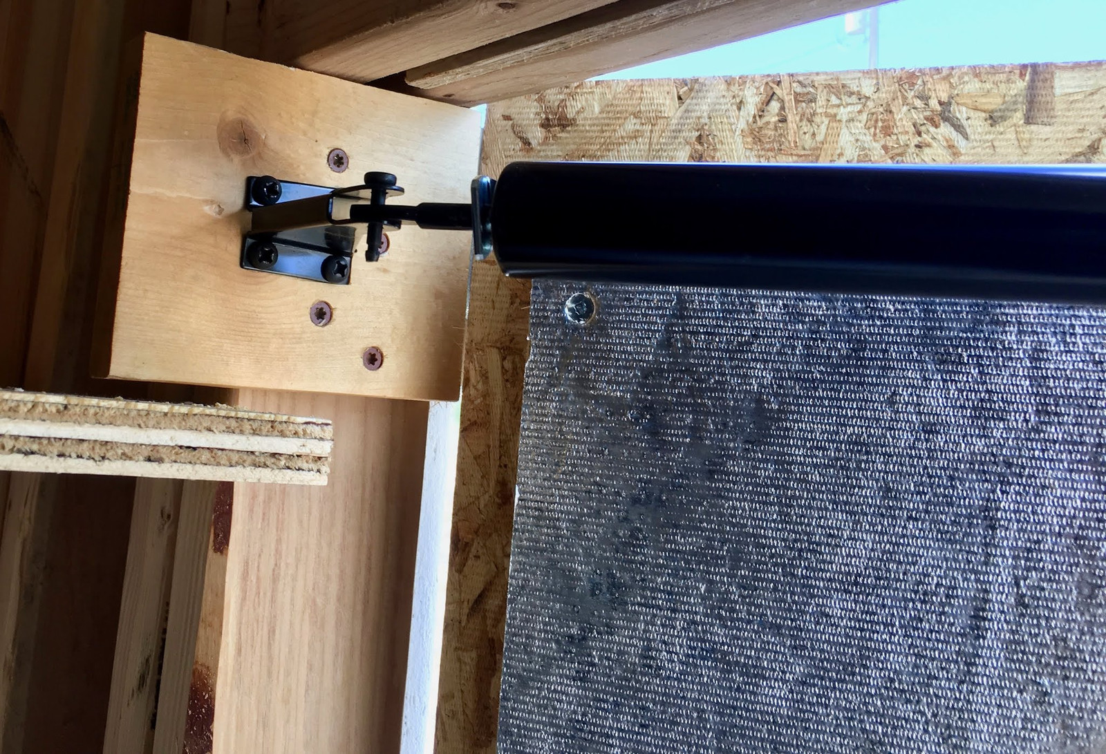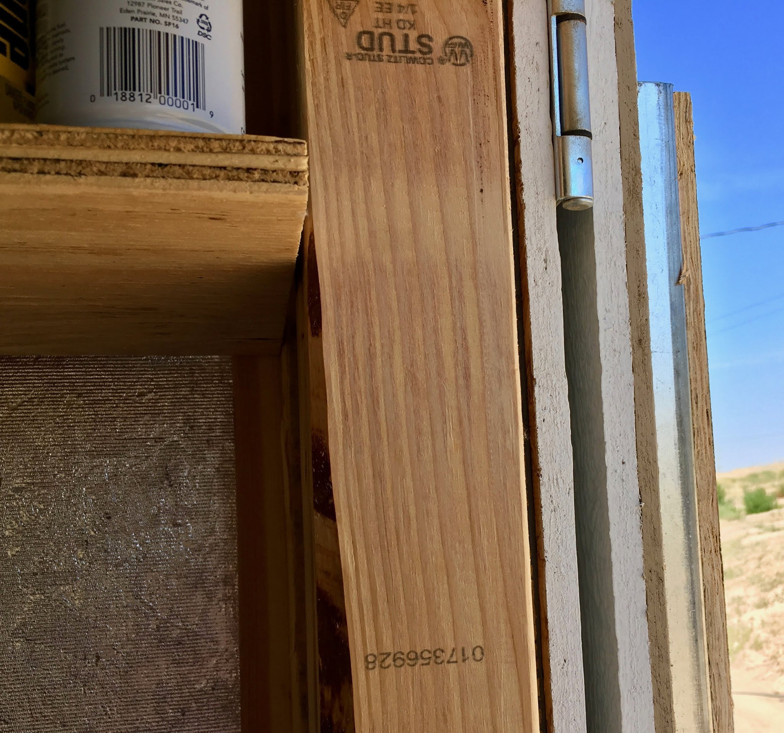 The trick here, and the reason this is more complicated than “Bolt them on and be done,” is because the shed doors are thick. If you look at this cross sectional view of everything, there are the shed studs, the hinges, the outer layer of the door, a metal frame (these doors shouldn’t ever sag - one of the reasons Tuff-Sheds are awesome), and then an interior layer of wood. It’s not a simple screen door, and the thickness of the door means that the geometry on opening is really quite weird.