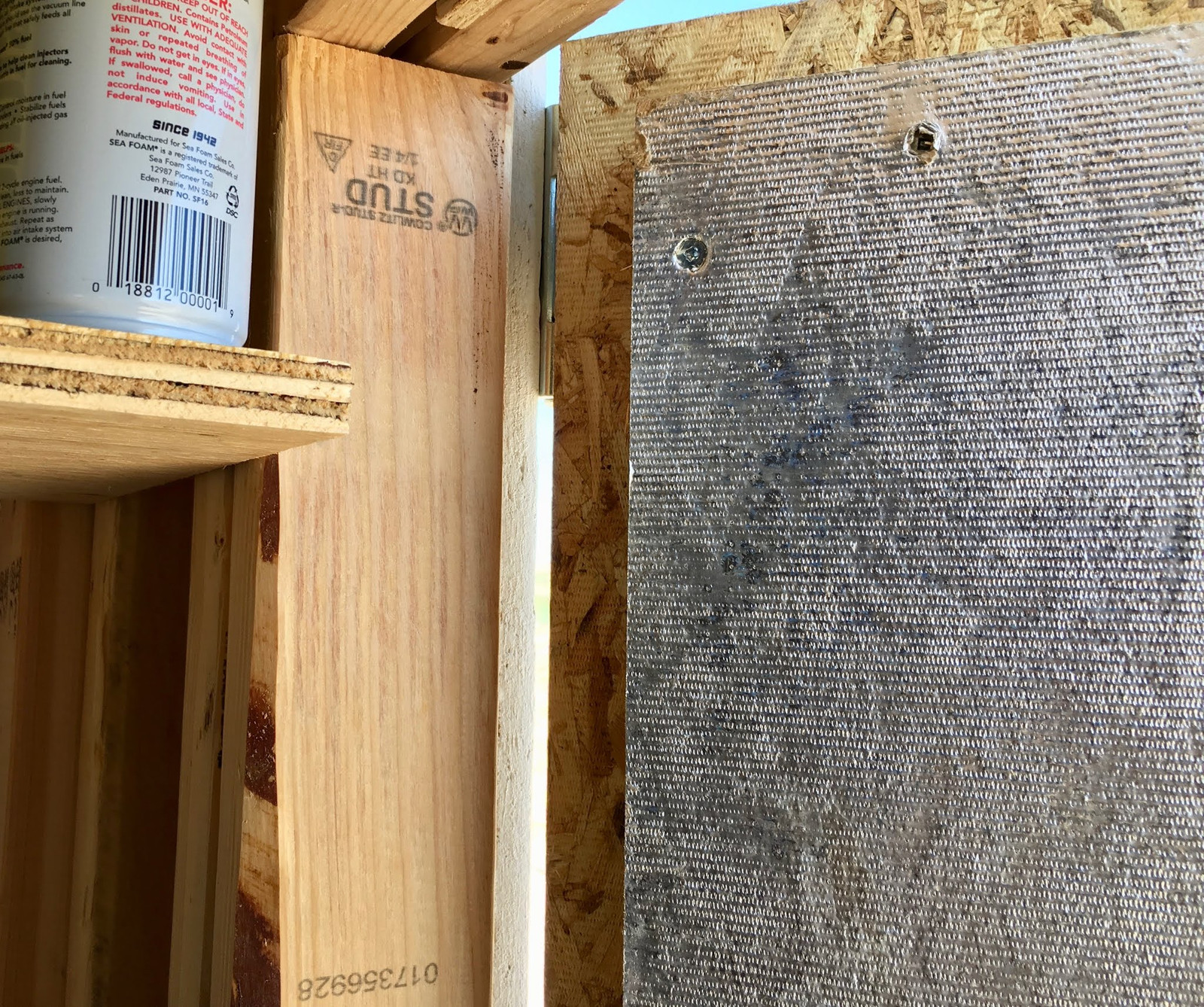 Then, I stuffed the gaps in the interior panels with cardboard to help keep airflow between bins from drying things out. It’s a good place to stuff cardboard, and it’s one of the many “random uses of cardboard” I’ve found that justifies keeping some shelf space in the shed devoted to large hunks of cardboard. You don’t realize just how much of the stuff shows up until you start saving most of it!
