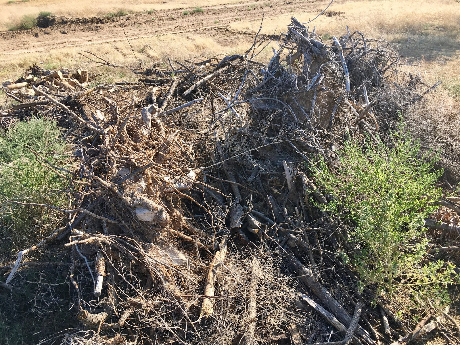 A bit of dragging and the tongues are out of the way, down by the fenceline, and outside the firebreak. They’re not going to care if a cheatgrass fire comes through, but I might want the scrap metal at some point.