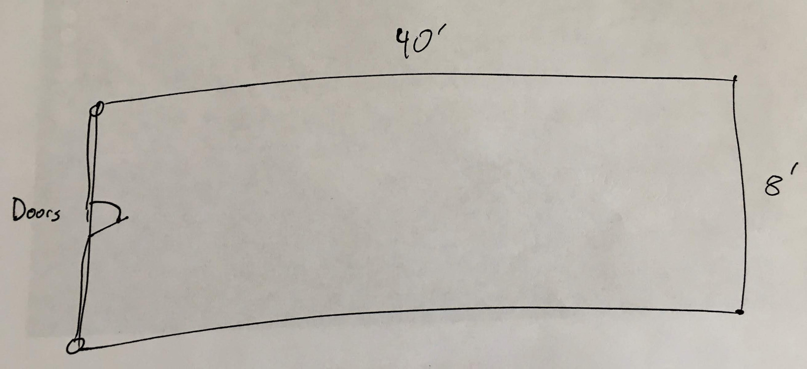I have a signed off building inspection for my 40’ shipping container. Applying for the building permit required a floorplan, and it seems “A 40’ shipping container” is not enough of a description for some people to envision the floorplan (perhaps the people up at the Planning & Zoning board don’t hang out with people who think shipping containers are cool?). So, I have this not-to-scale and not-quite-done-with-a-ruler floorplan on file with the local building permit people. The interior opening door is entirely wrong and was added by someone there after I handed it over so people could figure out which side the doors were on. Not that there’s any indication of property orientation here. Because… somehow… anyway. It’s done. It’s legal.