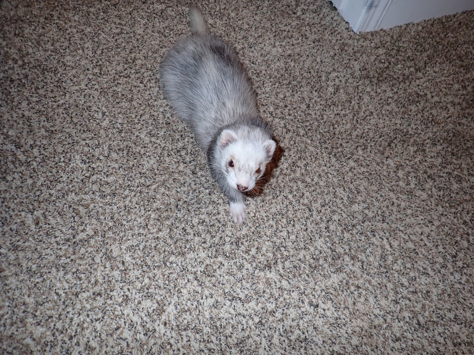 A few minutes later, she learned, and I learned, that ferrets are violently allergic to milk, and it will come back up the way it came in the form of projectile vomiting. A ferret’s exit path that way is a straight shot, and when it’s been bulked up with chewed kibble, this little girl had some genuinely impressive range.