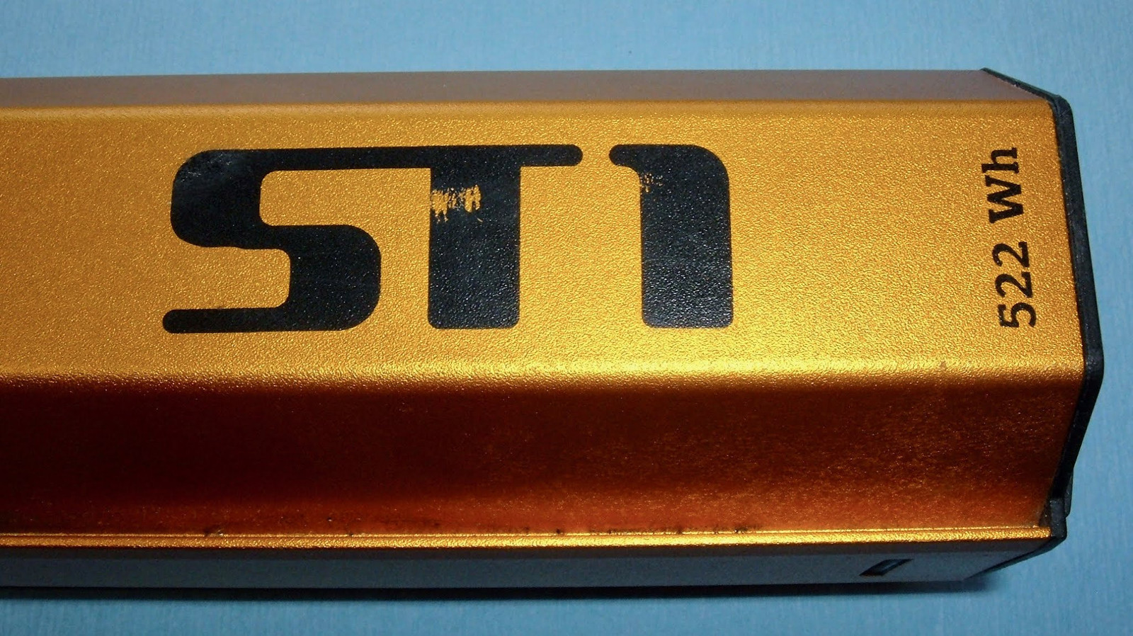 The side of the battery case points out that this is an ST1 battery - and also, helpfully, points out the capacity - 522Wh. That’s a hefty battery - this battery will run an electric car for over a mile, or an electric bike for… oh, 15-30 miles, depending on how much assist you use, the terrain, speed, etc. It’s a good sized pack, comparable to the battery I used in my Seattle Commuter - and designed for similar things.