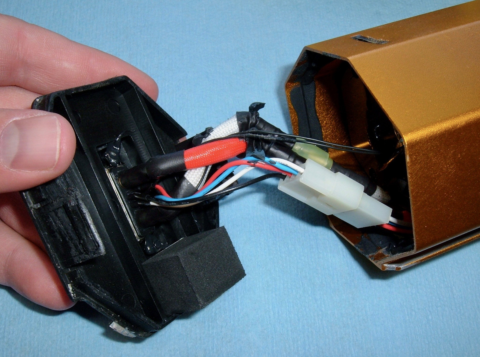 I shouldn’t say all the connections are modular. There’s that pair of black wires going into the pack that doesn’t have a removable connection. It’s just soldered straight to the connector. But, those wires look very suspiciously like the normal wires for…