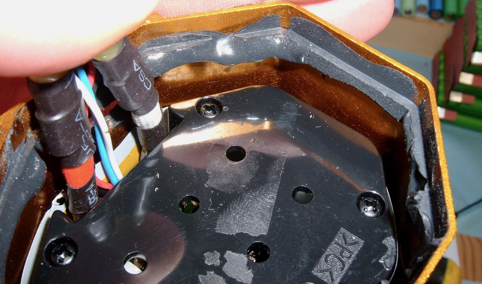 You’ll notice a nice foam rubber pad here - the pack is very well shock proofed. A hard metal shell, and plentiful padding internally to help prevent shocks from making it to the cells.