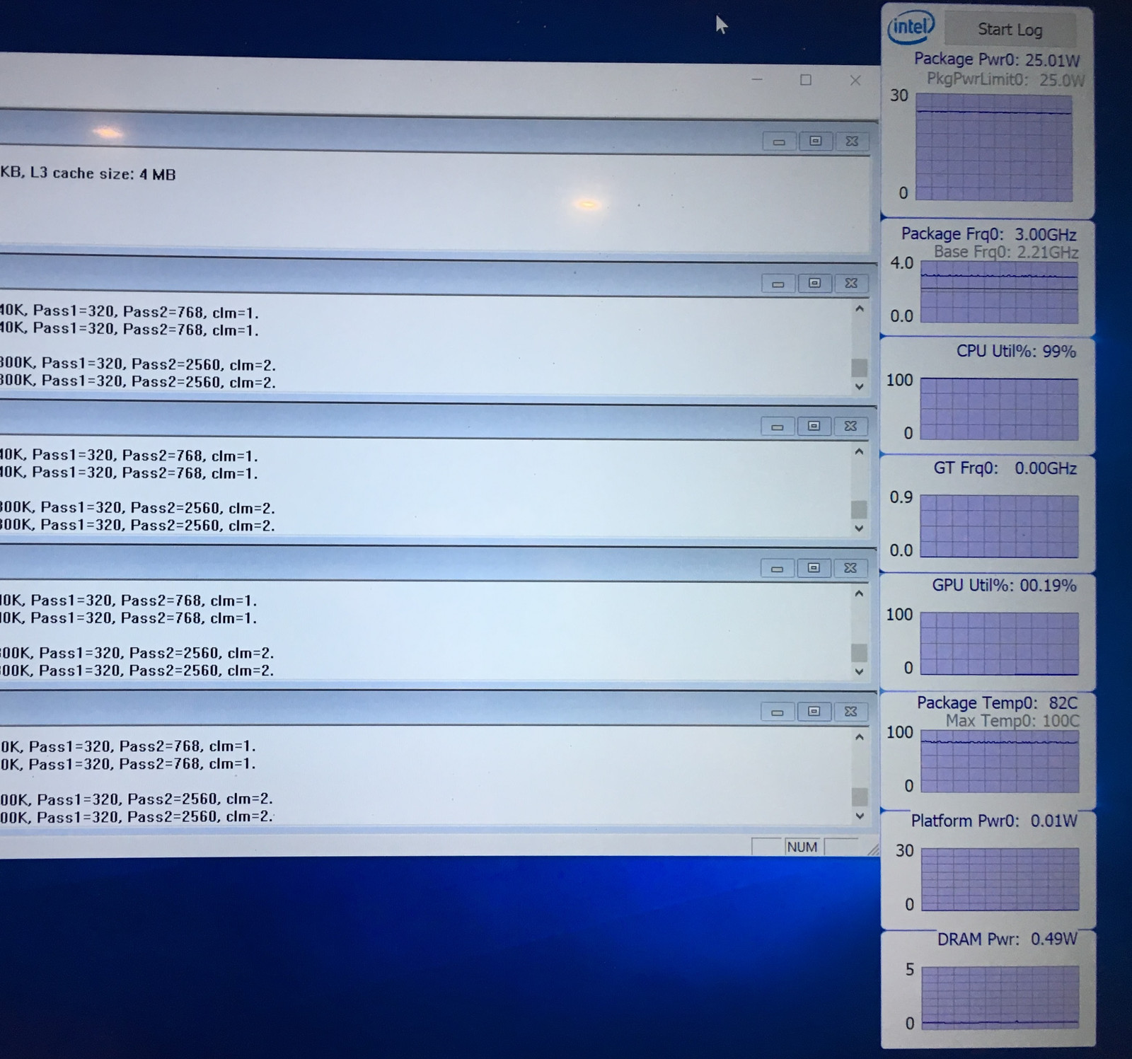 With the more power-hungry load of Prime95, things sit closer to 3.0Ghz - the package power limits sit at 25W, and the temperature sits around 80C. Hot, but not unreasonable for a passive case. I could probably up the power limit, but I see no real point, and 80C is plenty hot for this system.