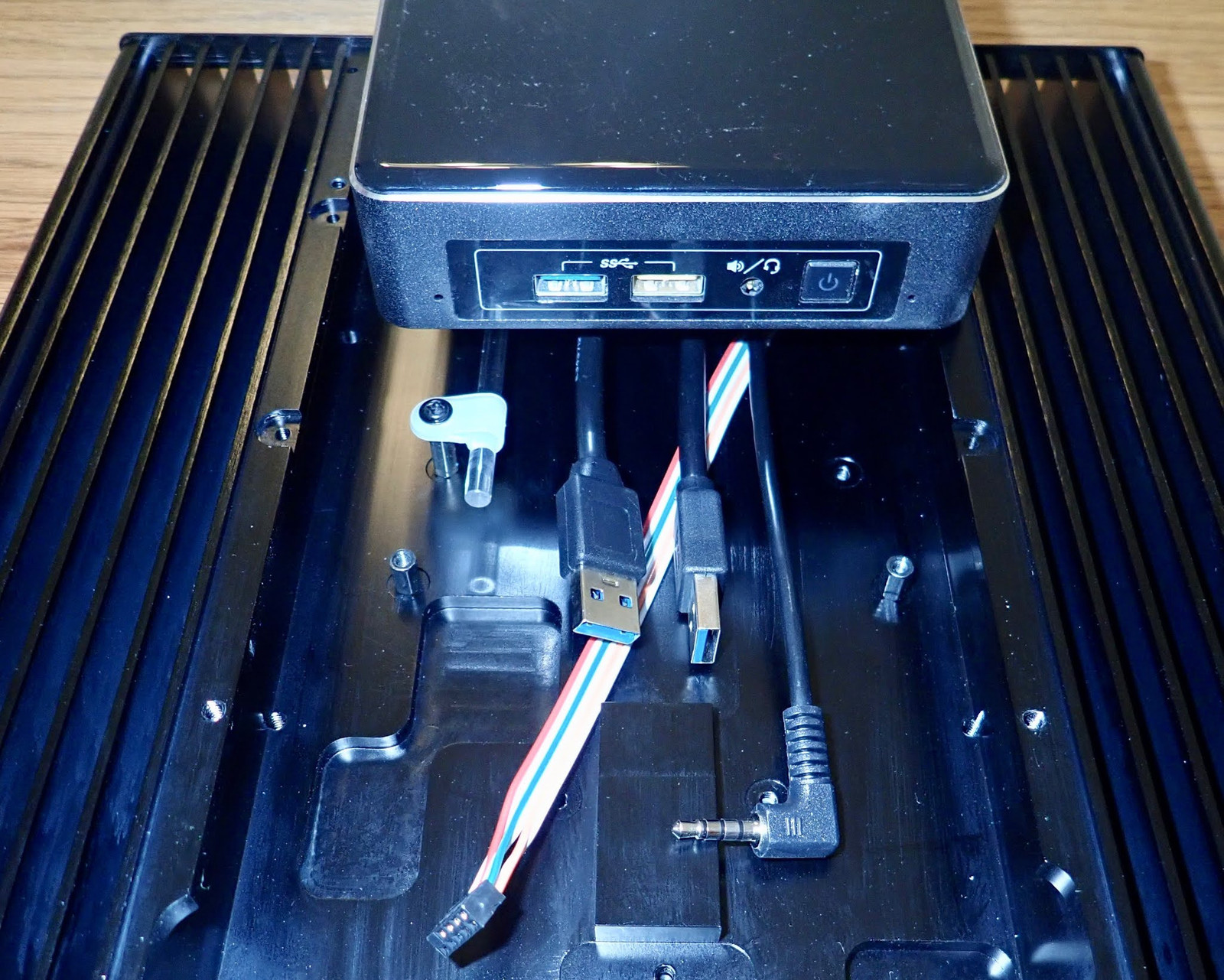 If you want basic specs on the Plato X7, the Asaka website has details. But, in a nutshell, it’s just a very large hunk of aluminum, some screws, and some adapters. The NUC board fits against it, transfers heat into it, and then the heat flows throughout the case, eventually ending up in the air. Because there’s so much radiating area, the case requires no fans to cool a processor - even one that’s running quite hard. Finding them can be hard - I got mine shipped from Europe.