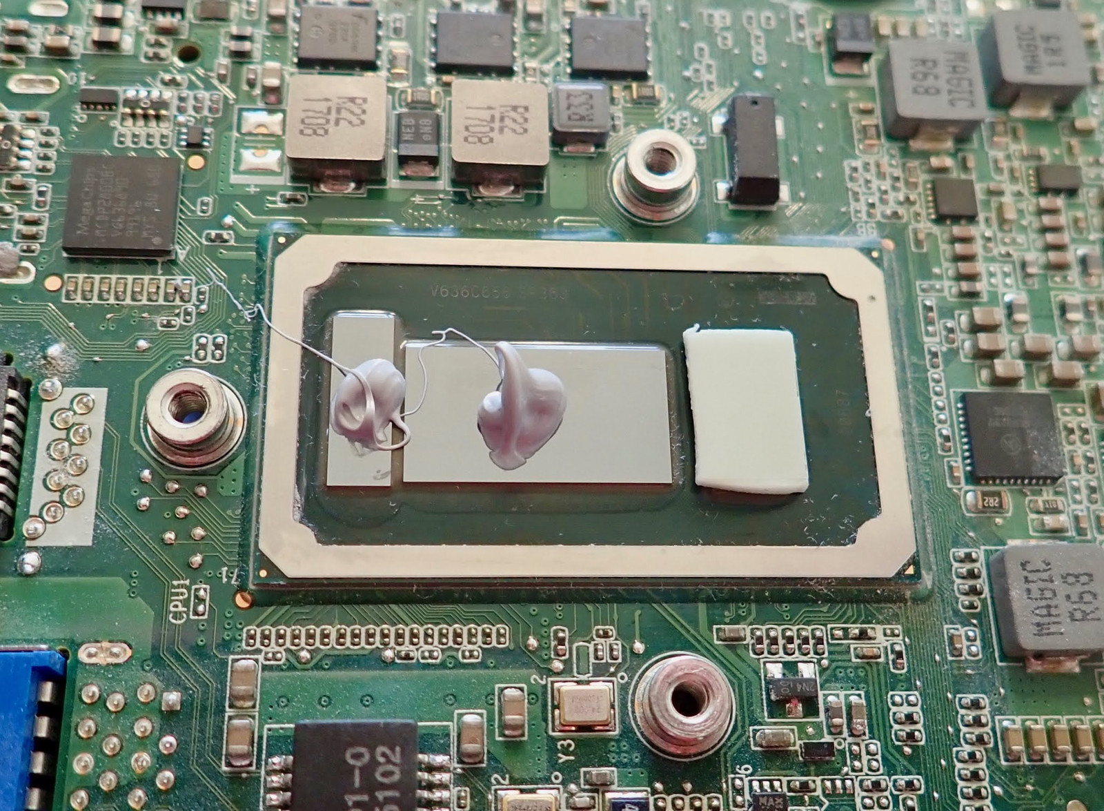 If you look closely at the X7 case, there’s a hunk of milled aluminum sticking up that the processor sits on to transfer heat into the rest of the case. For reasons slightly beyond my understanding, but that are probably related to older NUC boards, the surface isn’t entirely flat. There’s a step down at one edge.