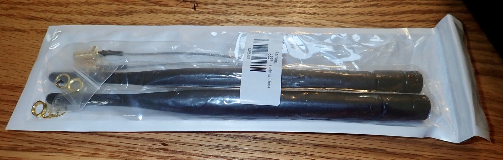 After a week or two of waiting, the MHF4 pigtails and antennas showed up. Many of my projects span a month or more, just waiting on parts (or waiting on me to have time to assemble parts). This project is no exception. It took 2-3 weeks for the antennas to arrive, and I ran on the old case just fine for that period of time.