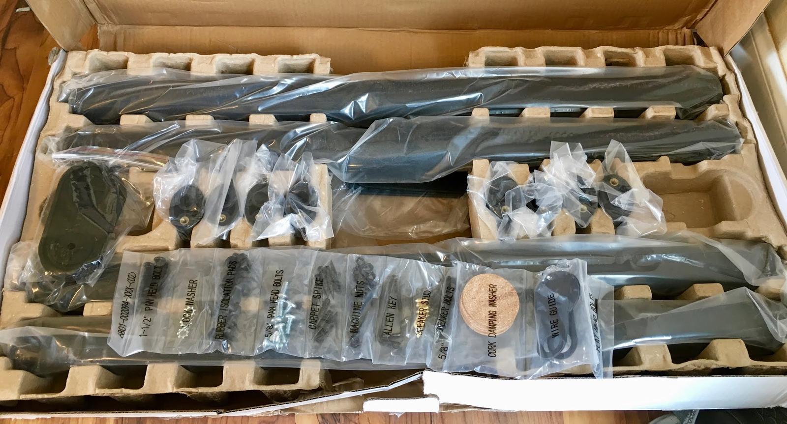 You’ll find the bases under the main collection of parts, contained in separate cardboard and plastic protection. I’m actually surprised the parts aren’t oiled with how heavily plastic coated they are - I normally see this sort of packing for things like brake rotors that are coated in oil to keep them from rusting. Fortunately, there’s no oil here - just somewhat comically well packed plates of steel.