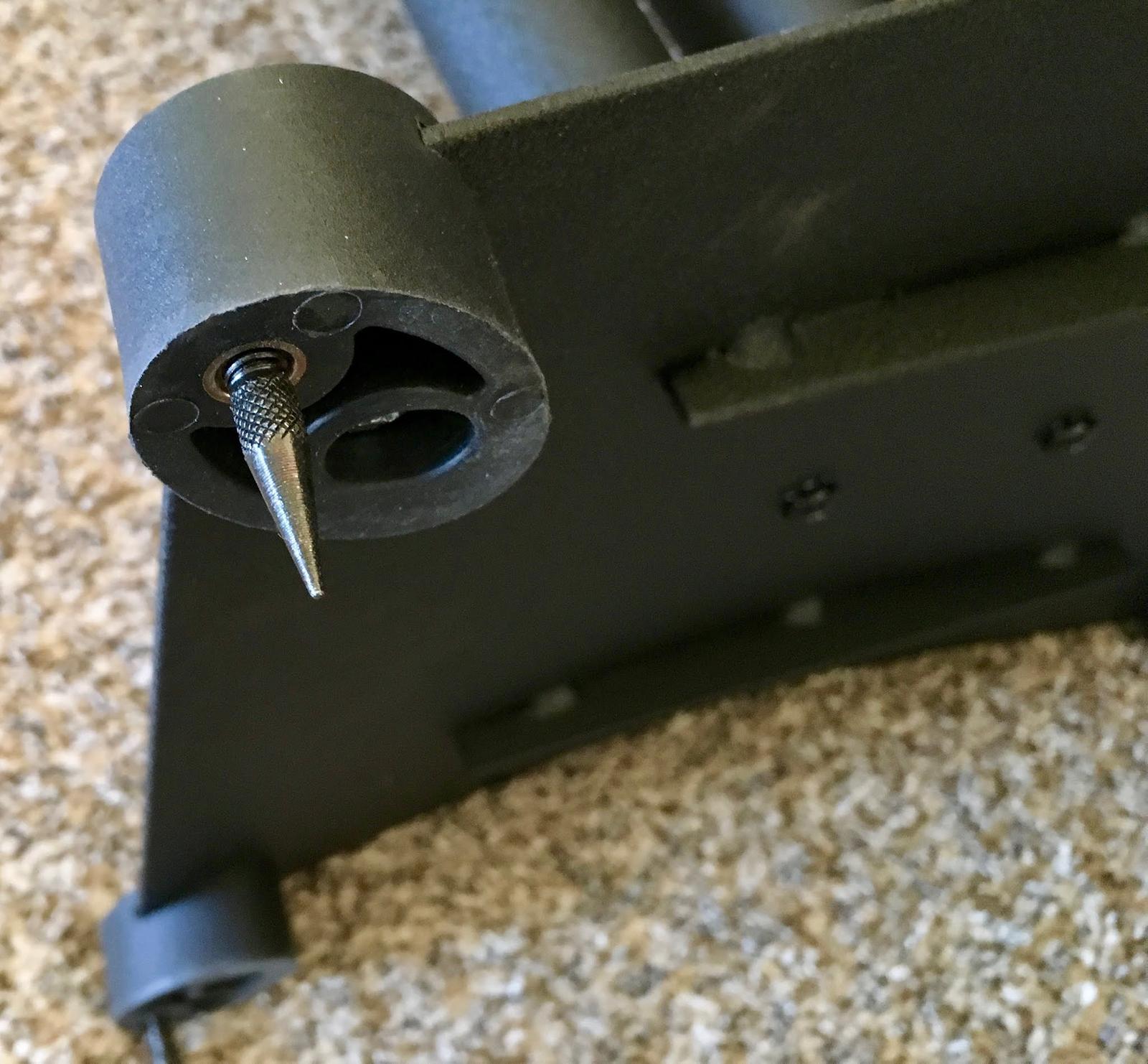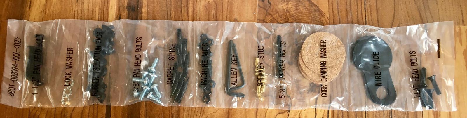 Now, you get to install the carpet spikes (if you’re planning to put it on carpet), or the rubber feet. And, either the speaker hold down bolt or the speaker supports.