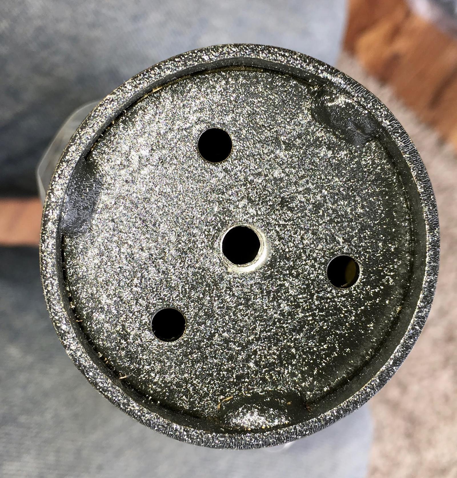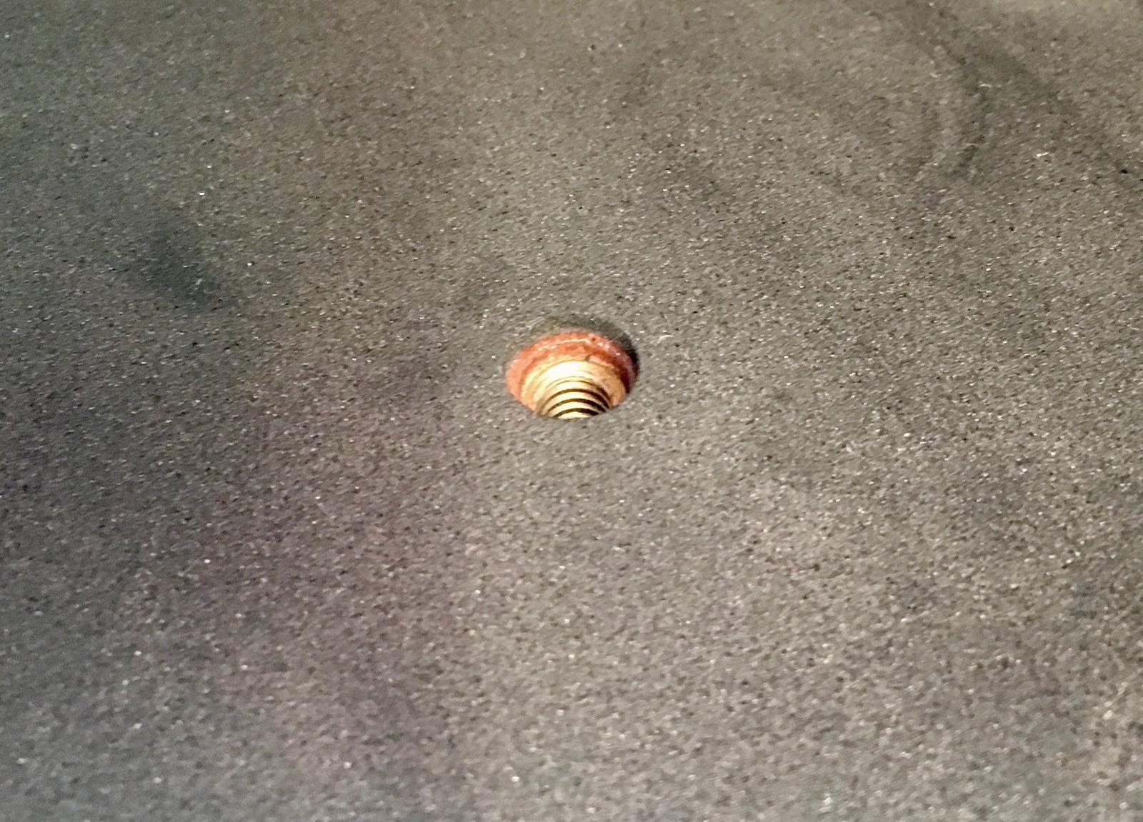 On the other hand, both ends are identical. Gravity pulls fill materials down. While the center hole will be filled with a nice bolt at both the top and the bottom, the surrounding three holes won’t be filled with anything unless you fill them. Not having a great feel for how much tightening, loosening, and adjusting I’ll be doing with this build, that struck me as a way to make a horrendous mess in the house when the fill started coming out while I was messing with things. Horrendous messes in the house are ideally avoided by being smart beforehand. Or, alternately, a shop vac.