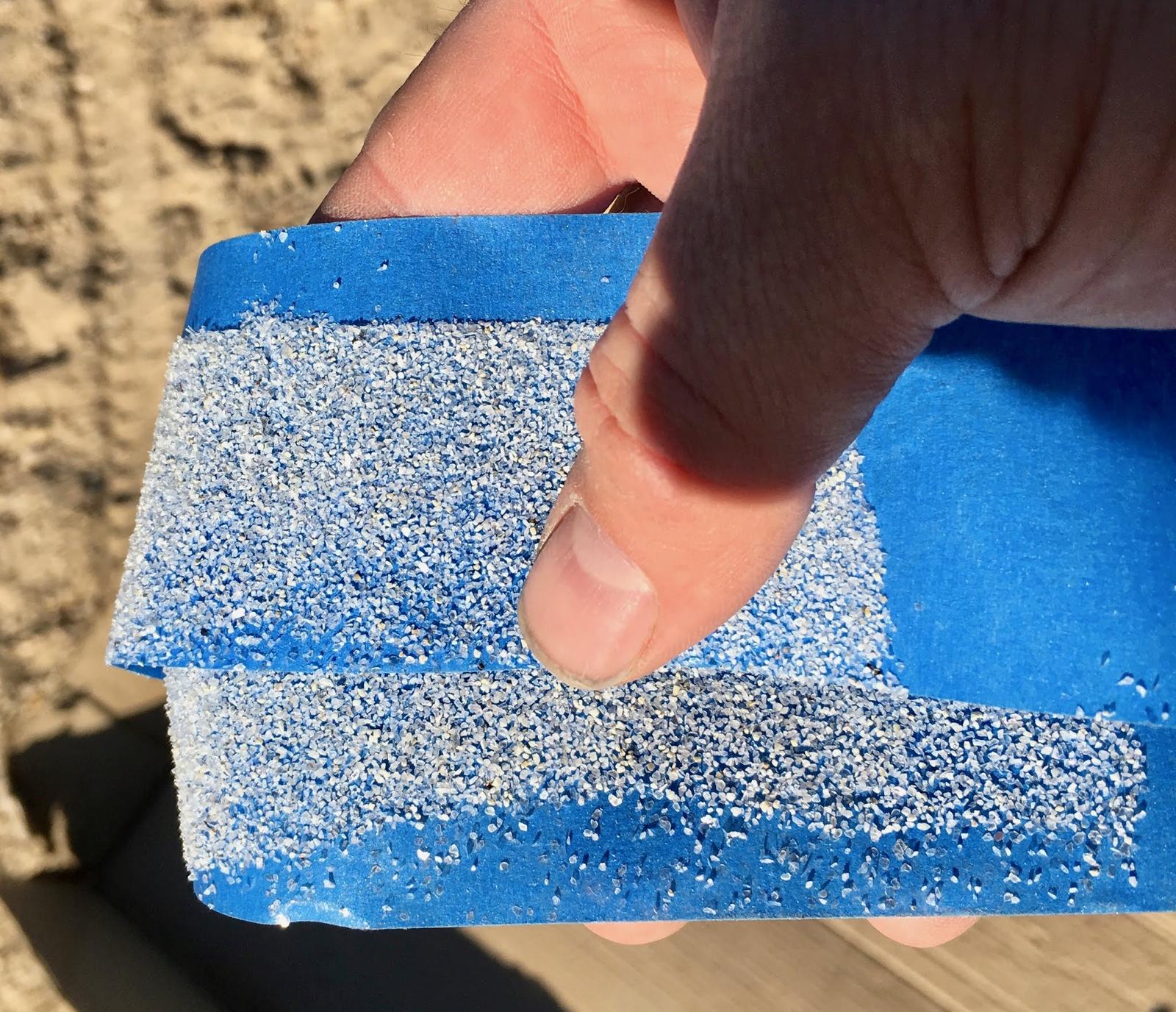 When you’re done, pull the tape off. If you’d used stronger tape, you would have made decent sandpaper! Masking tape doesn’t hold the quartz well enough, though. I tried.