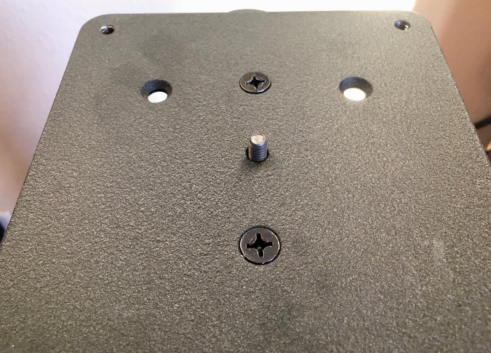 Aligning the whole setup blind is a bit tricky. Pushing the bolt through first, and then putting the speaker on seemed to work best. I had to make a Home Depot run and get a shorter bolt than the supplied bolt with the kit - the supplied one was too long to fully tighten down. If you aren’t really worried about the speakers moving in the first place, that might be fine, but with a small child rapidly growing, I wanted the speakers bolted down tight. So, a shorter bolt worked perfectly. You might find a 1/4-20 thread specification useful.